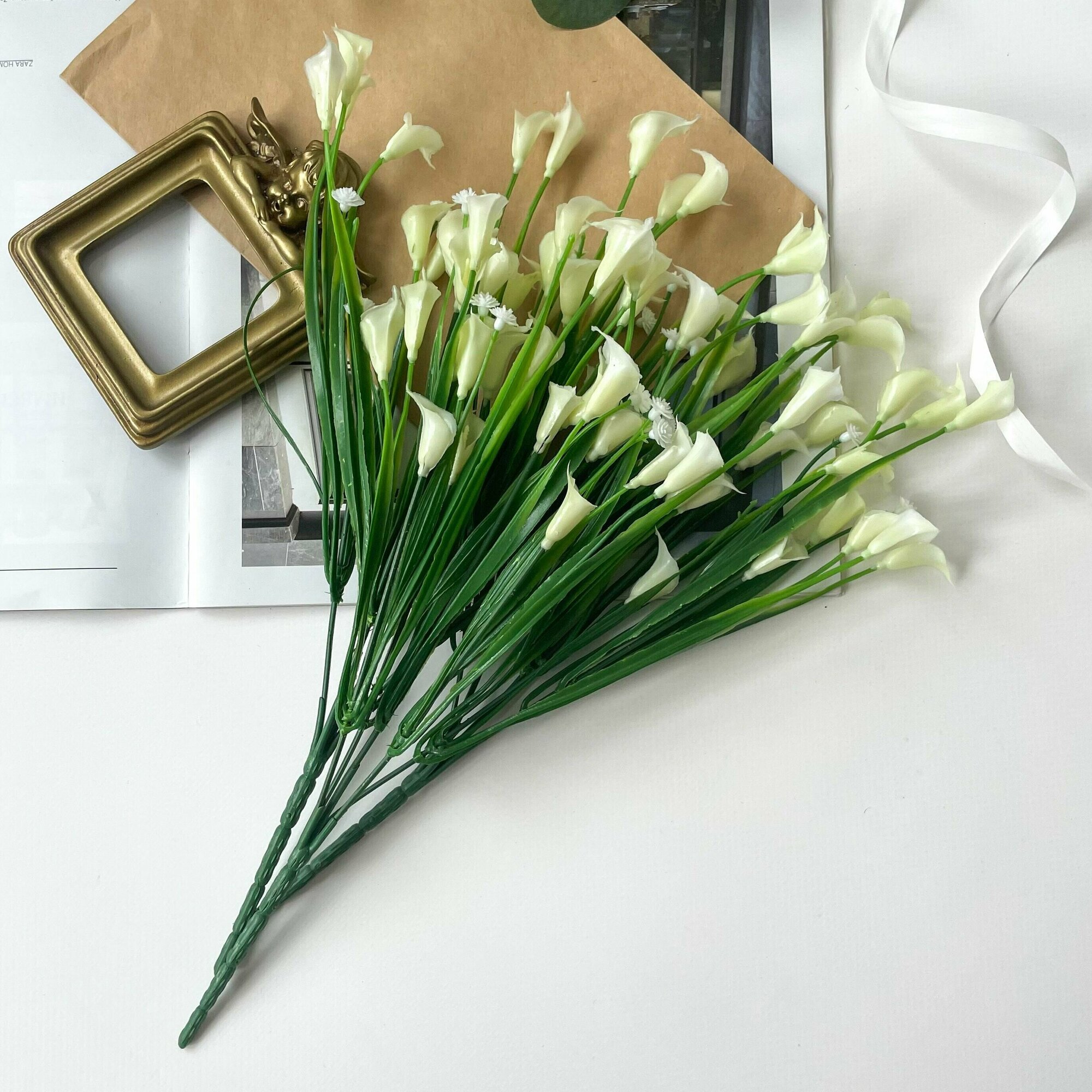 Каллы искусственные мини пластиковые, более 90 цветочков, 53 см, 1 букет