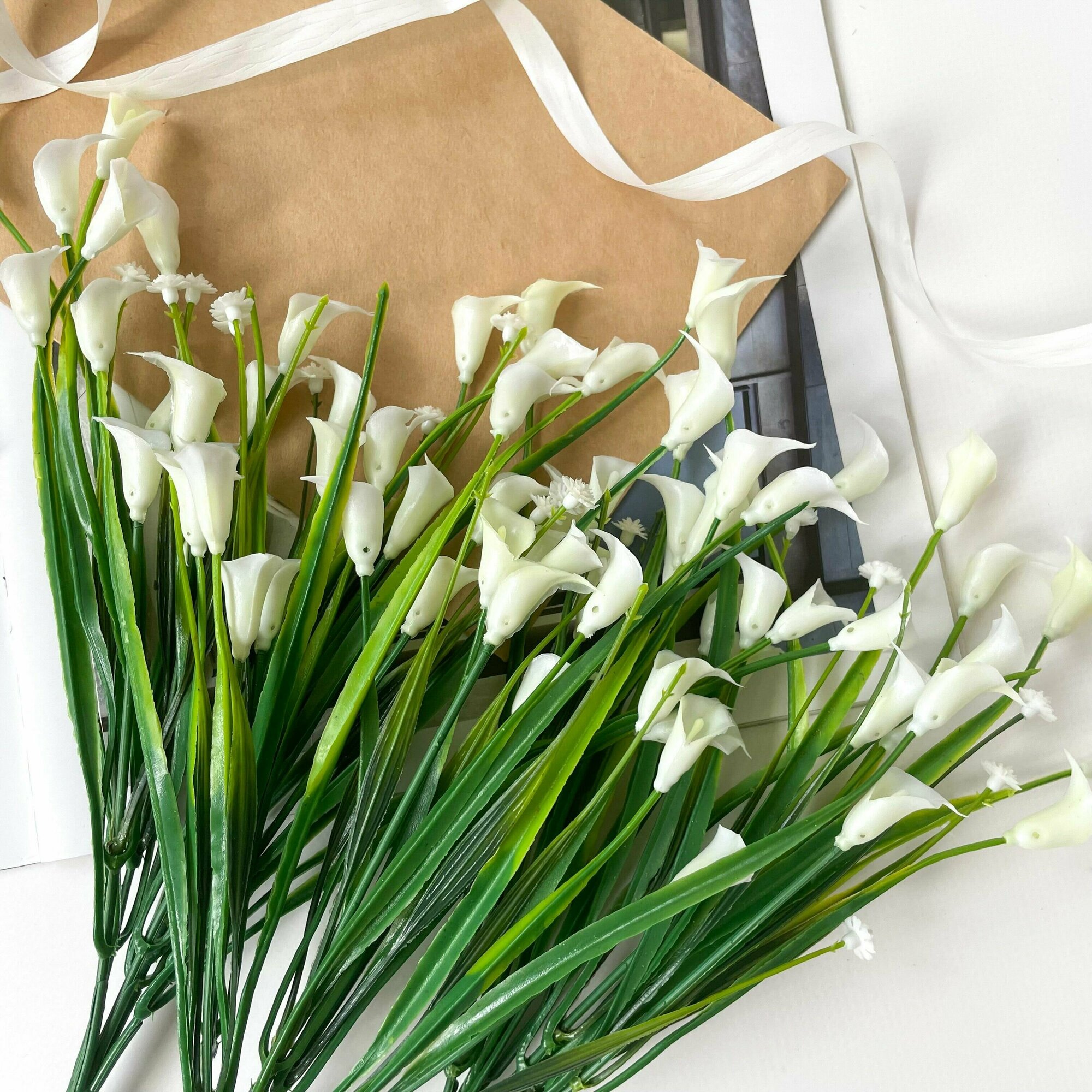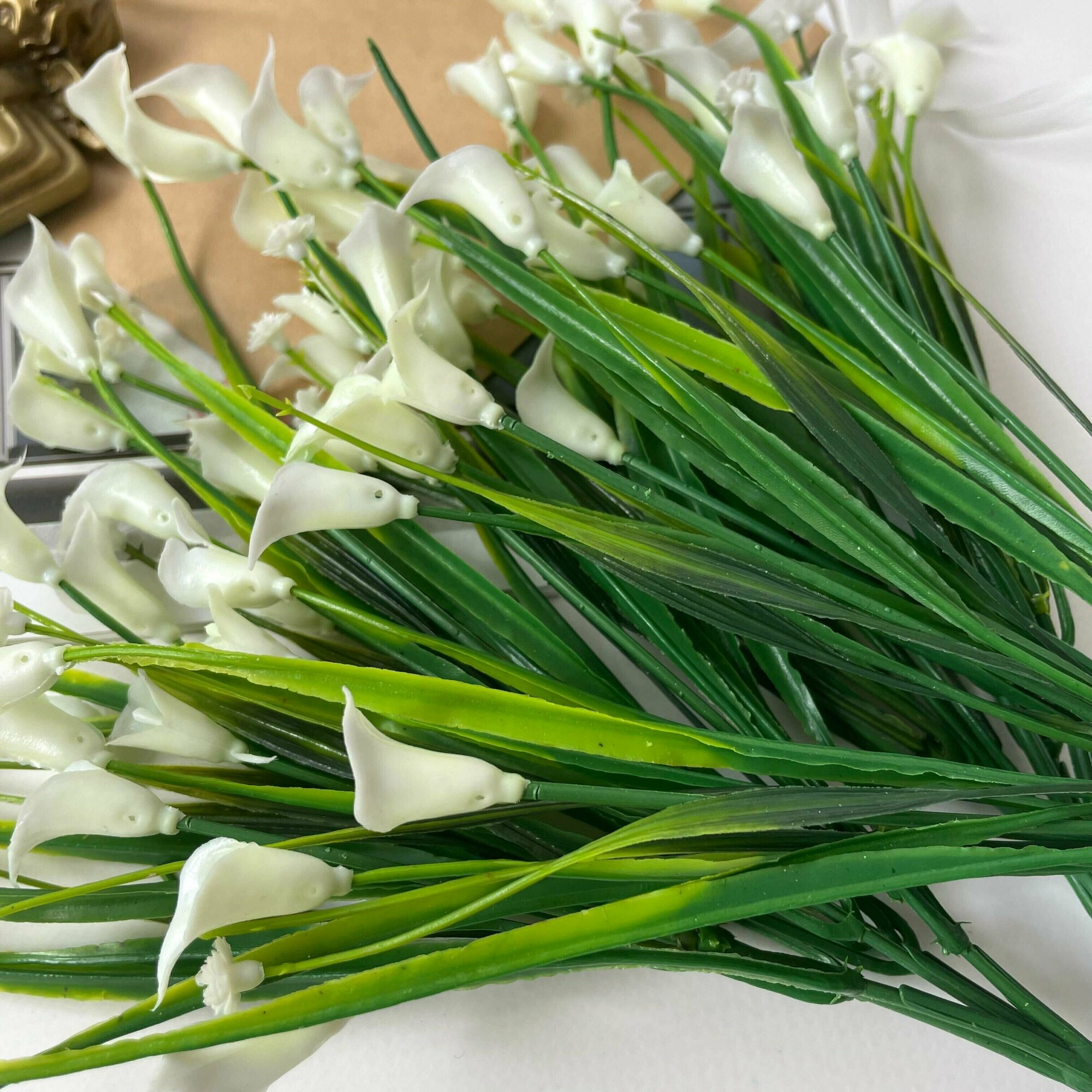 Каллы искусственные Белые пластиковые, более 50 цветочков, 40 см, 2 букета