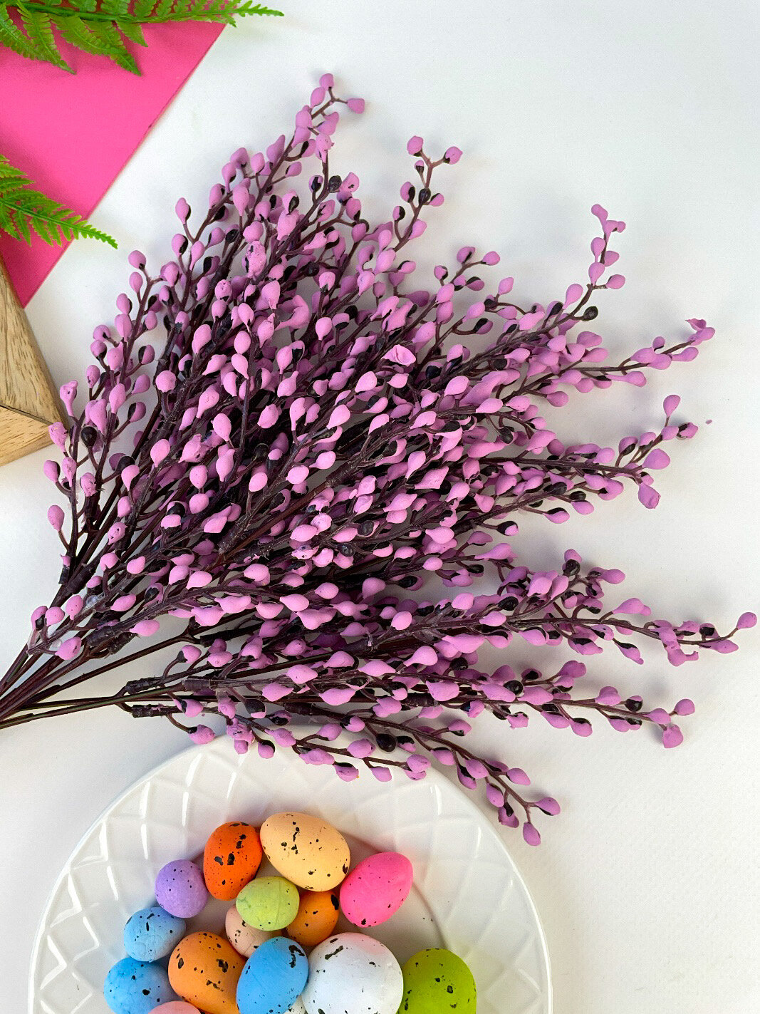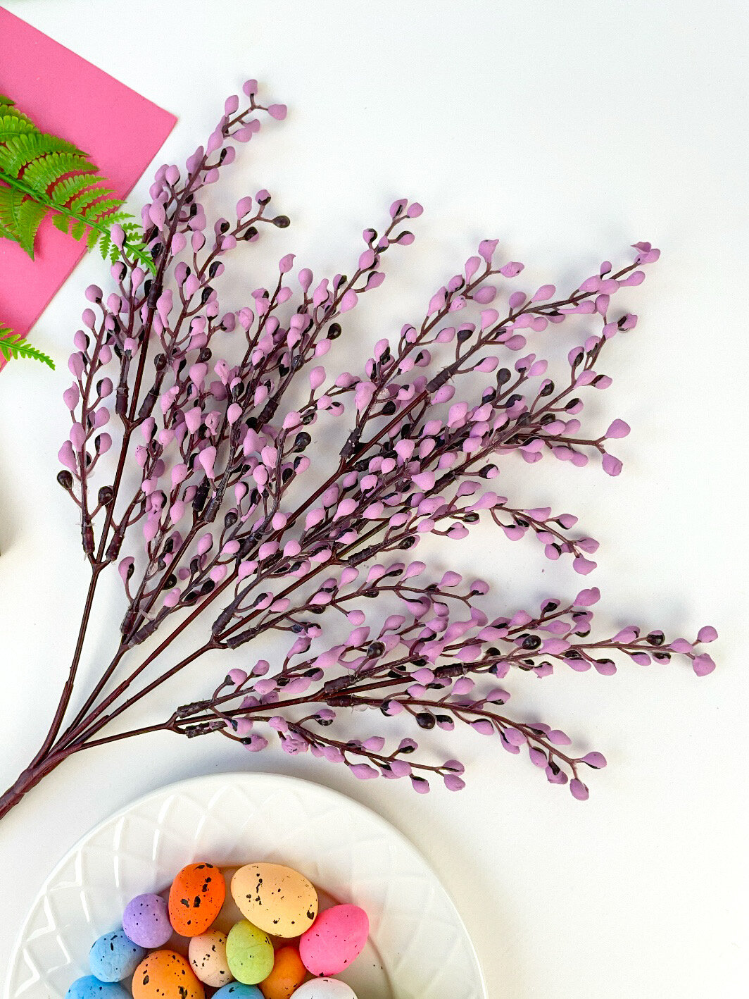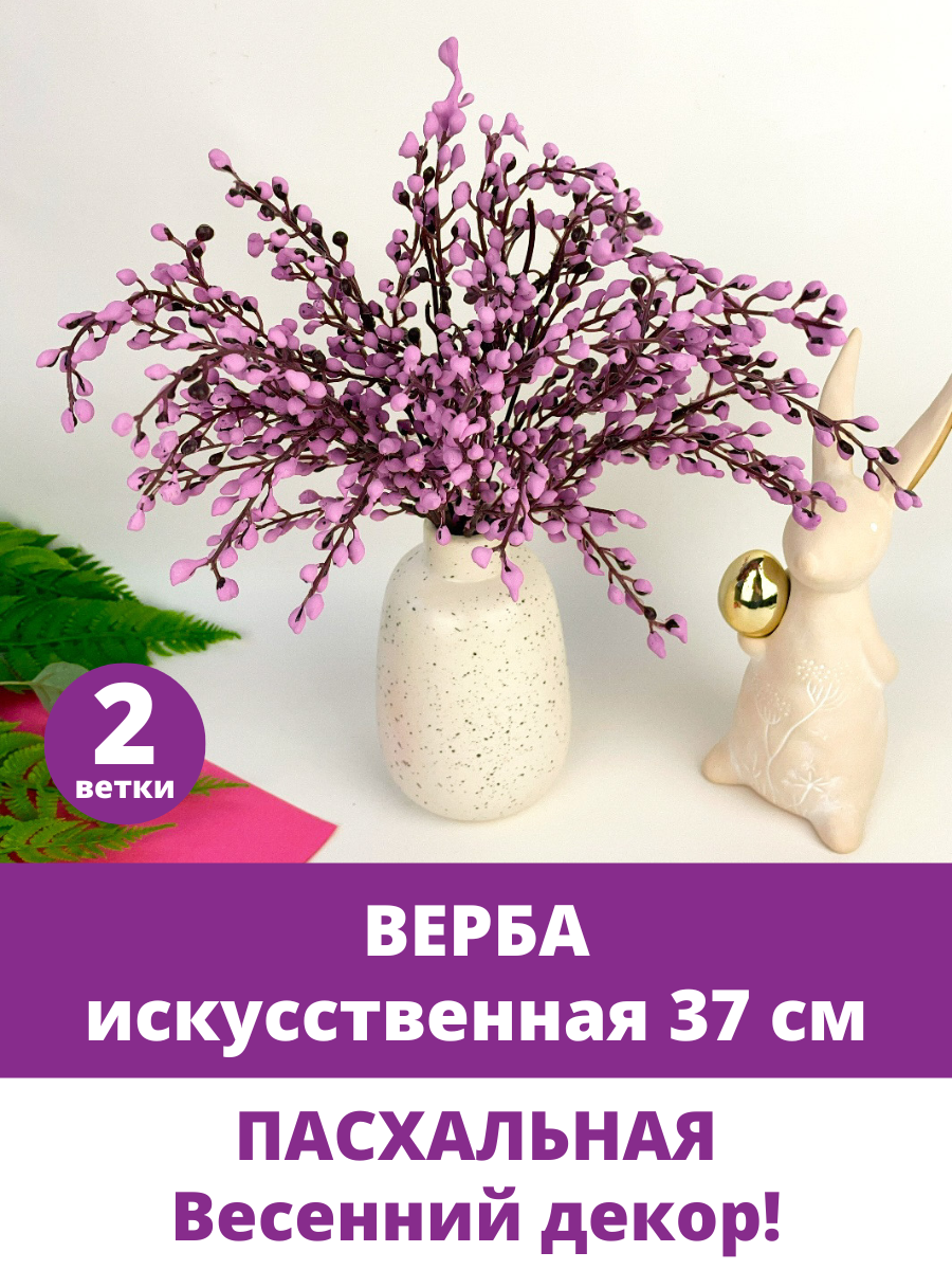 Купить Верба искусственная ветка, пасхальный декор, весенний букет 37 см, Сиреневая, набор 2 шт