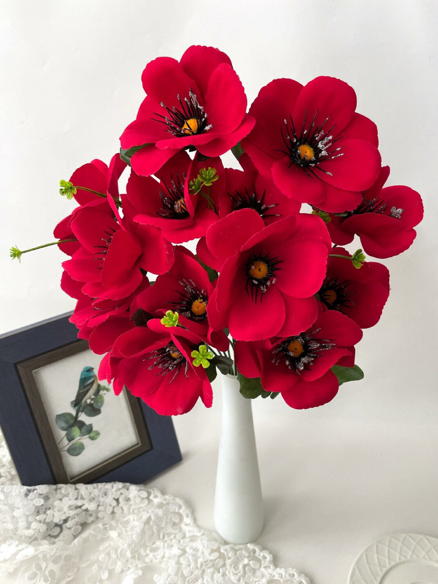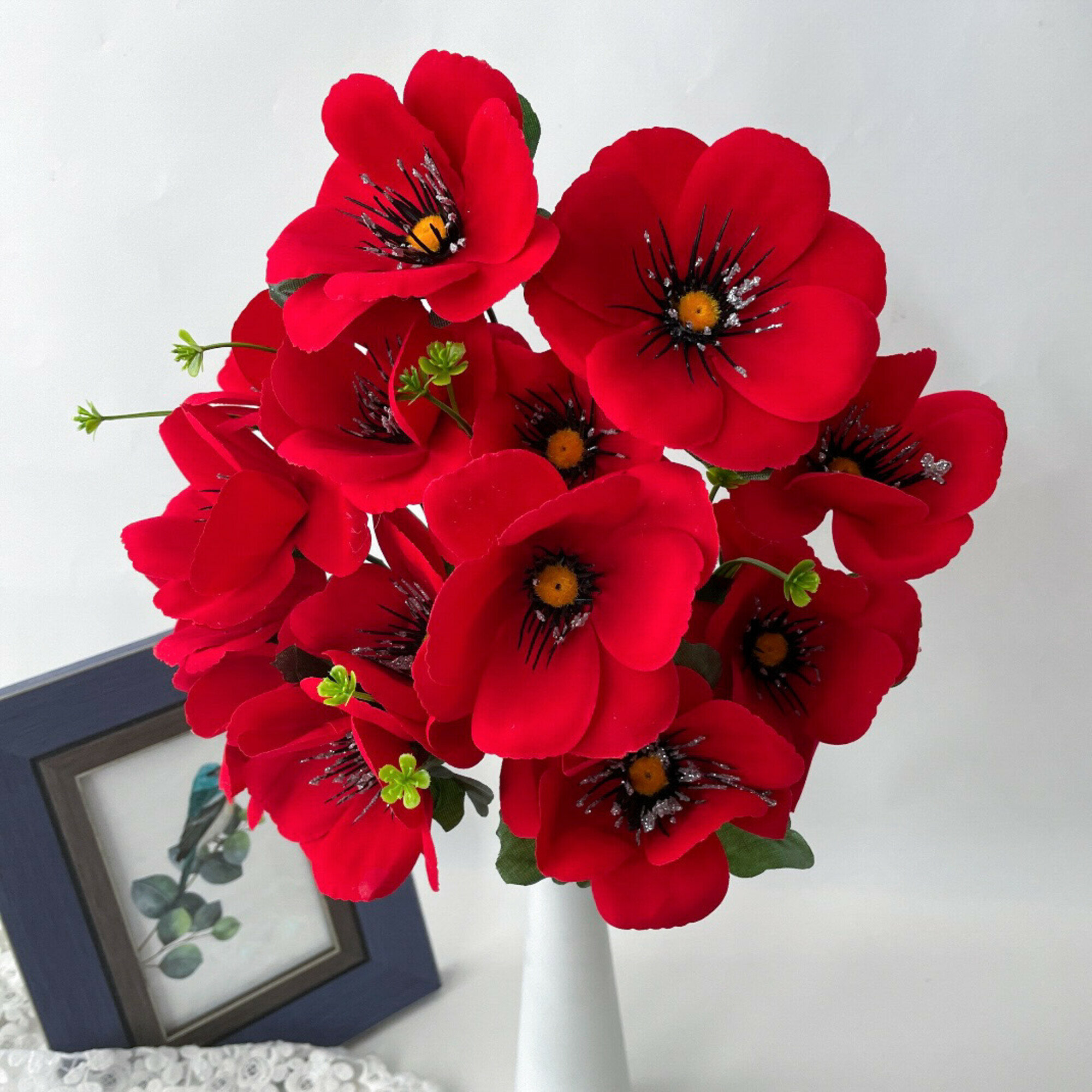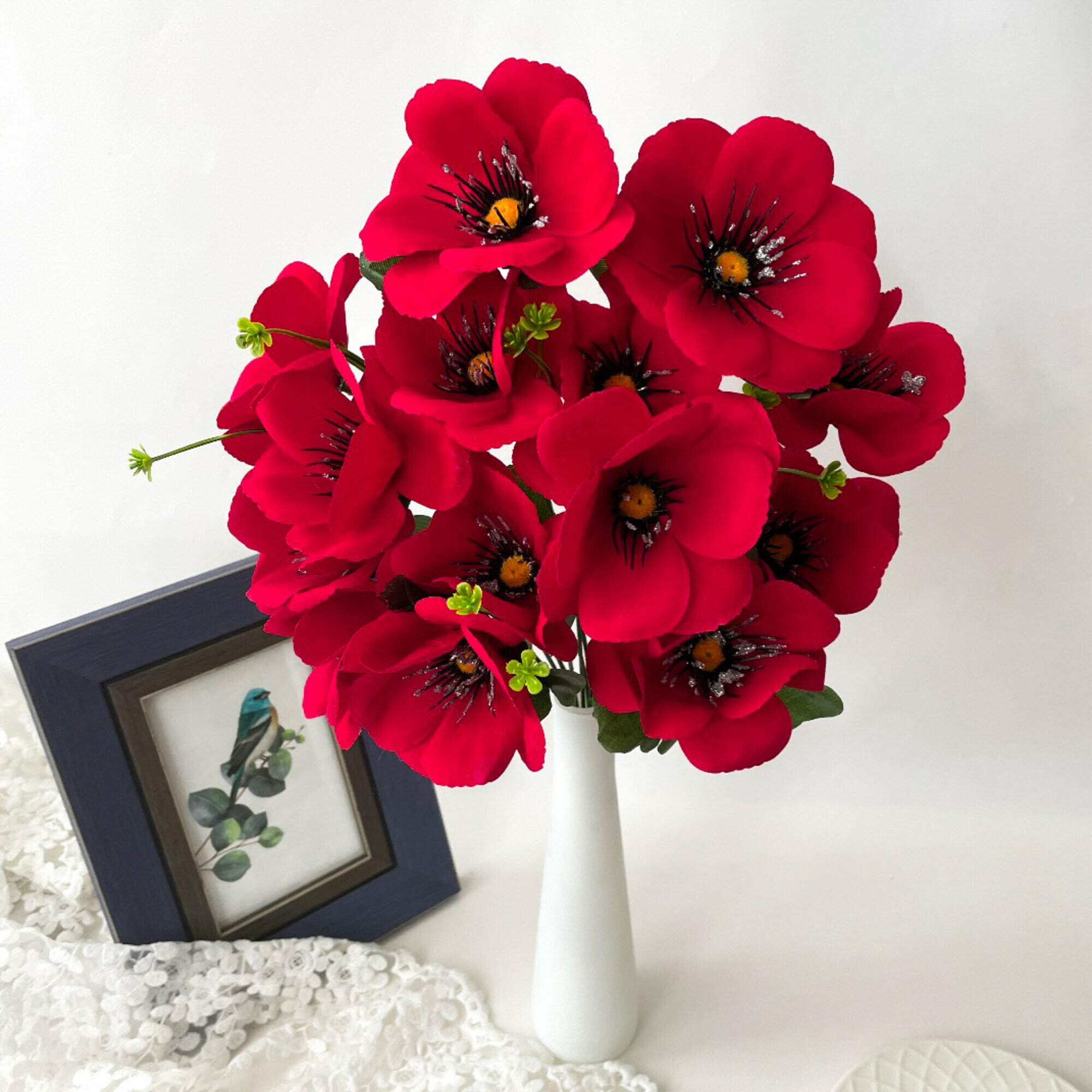 Купить Маки искусственные цветы, с блестками, 49 см, 7 цветков на ветке, набор 2 букета.