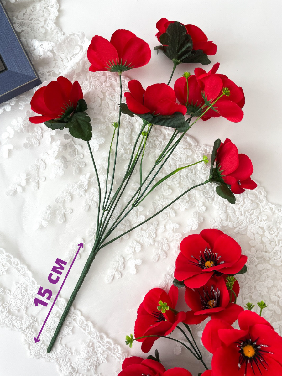 СохранитьМаки искусственные цветы, с блестками, 49 см, 7 цветков на ветке, набор 2 букета. интересное: