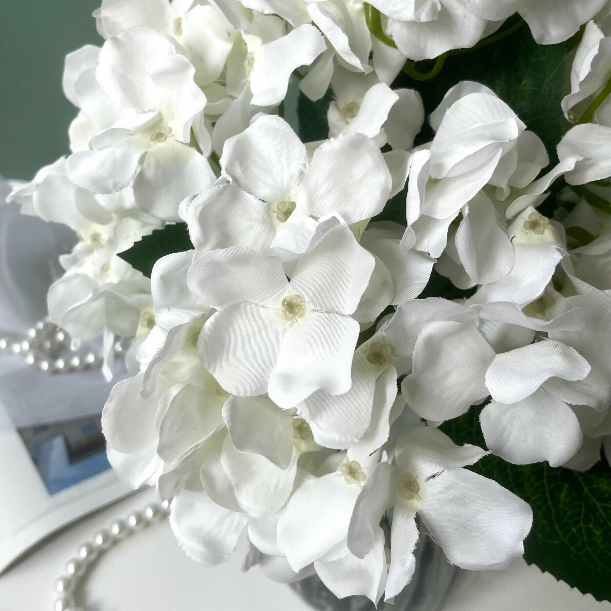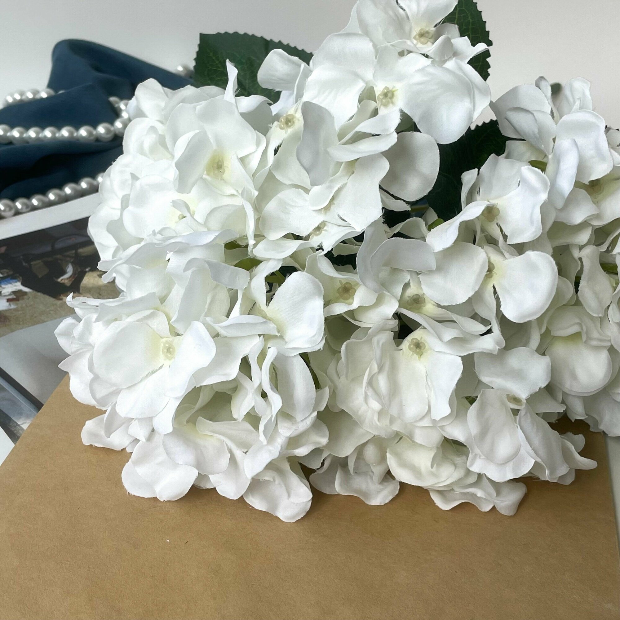 Гортензия искусственная для декора интерьера, Белая, цветы из латекса, 61 см, 1 ветка