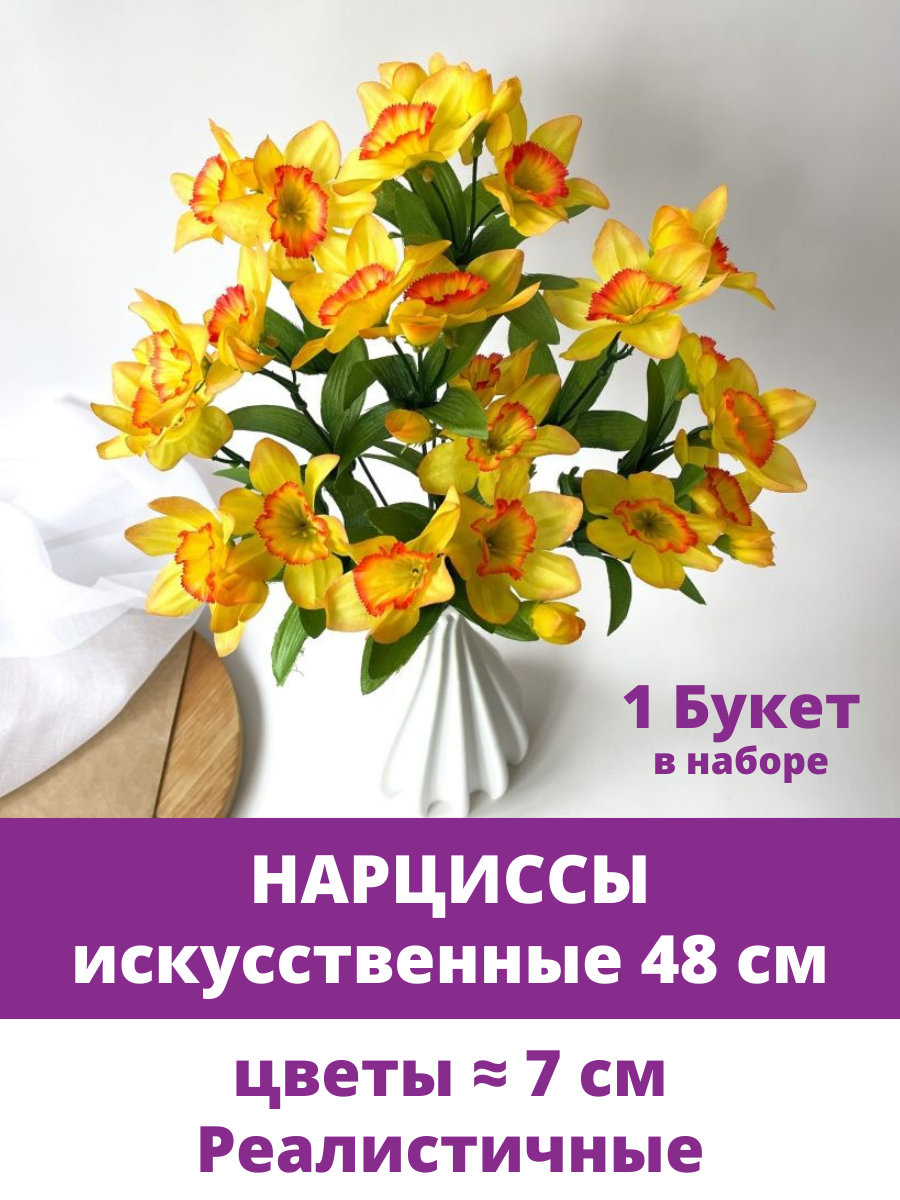 Купить Нарциссы искусственные, Желтые, букет 12 веток, 48 см, 1 шт.
