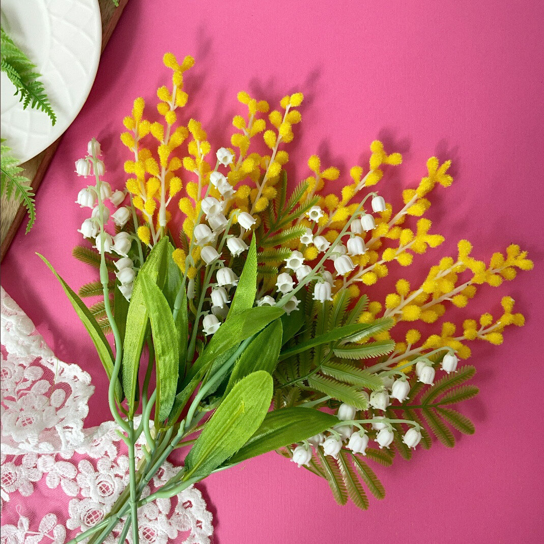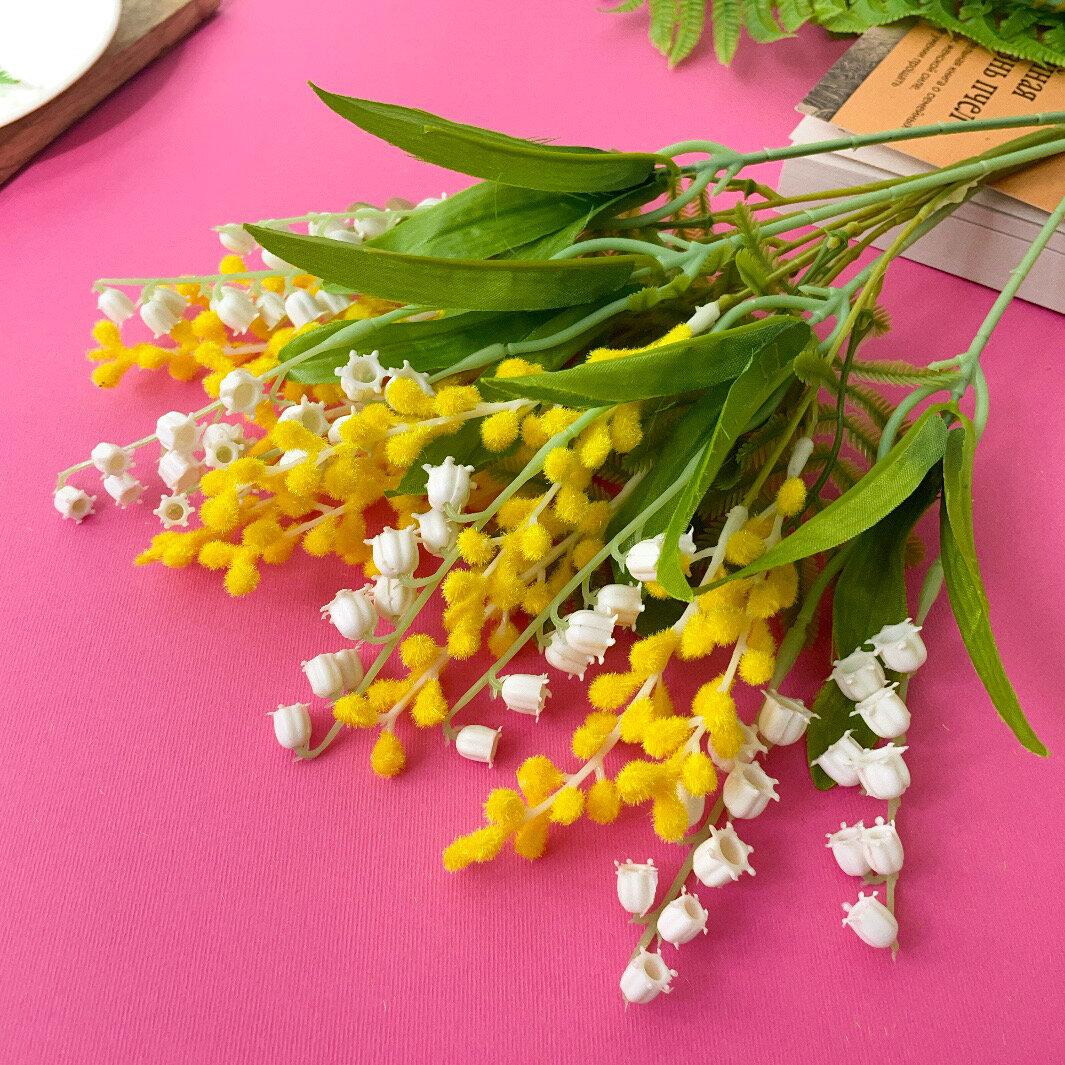 Купить Мимоза искусственная и ландыши искусственные цветы, букет 36 см, набор 5 веток