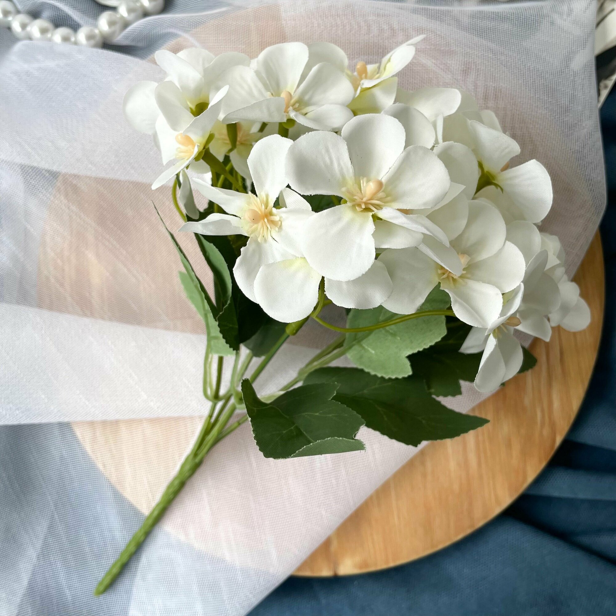 Гортензия искусственная для декора интерьера, Белая, цветы из латекса, 61 см, 1 ветка