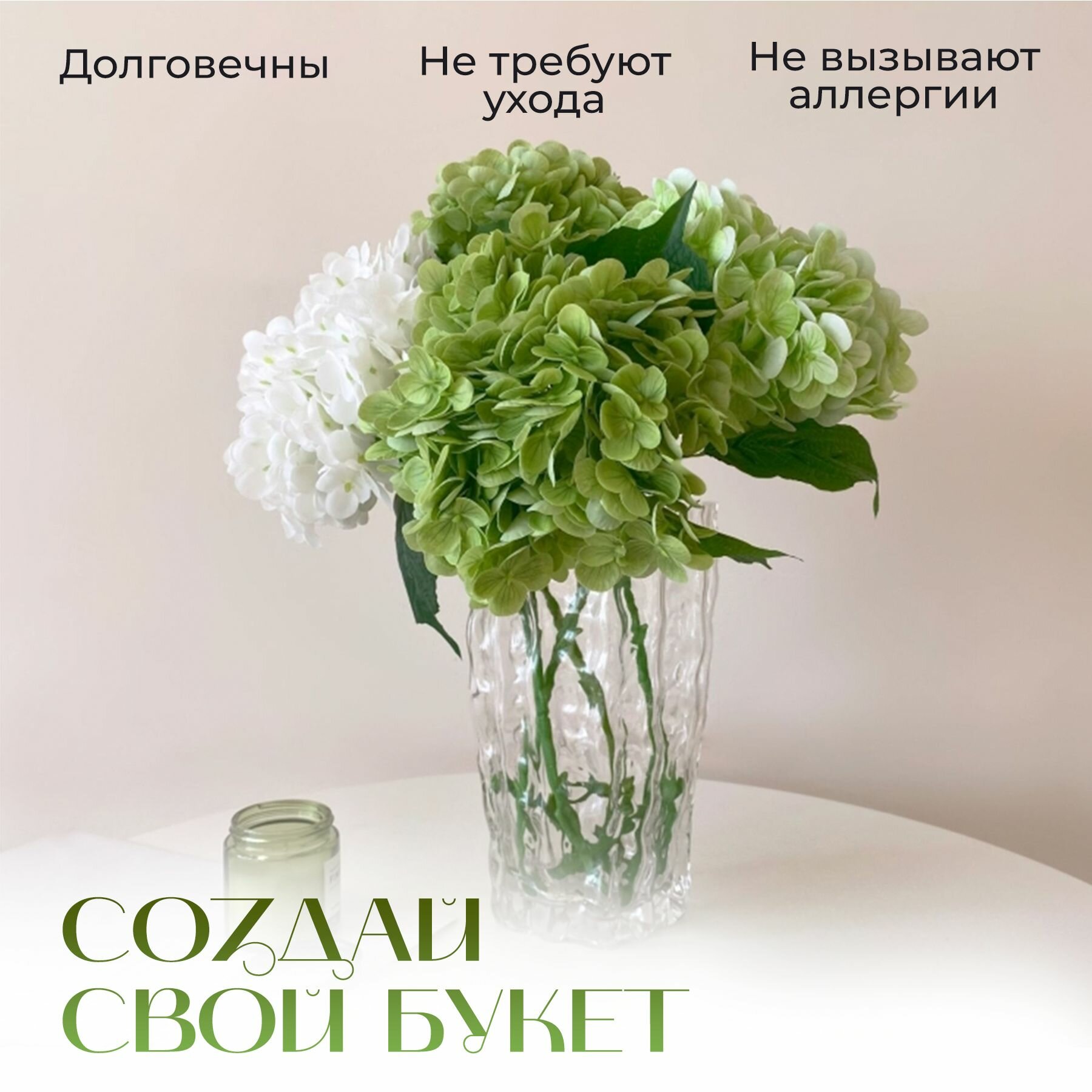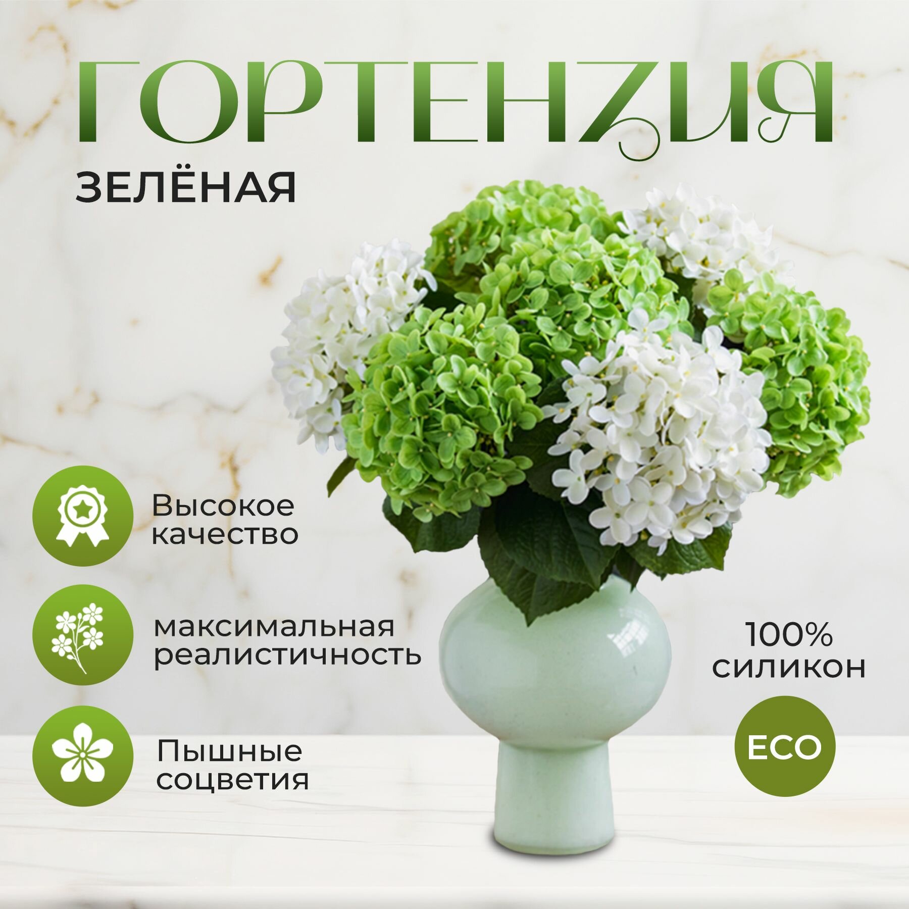 Гортензия искусственная силиконовая, зеленая интересное: