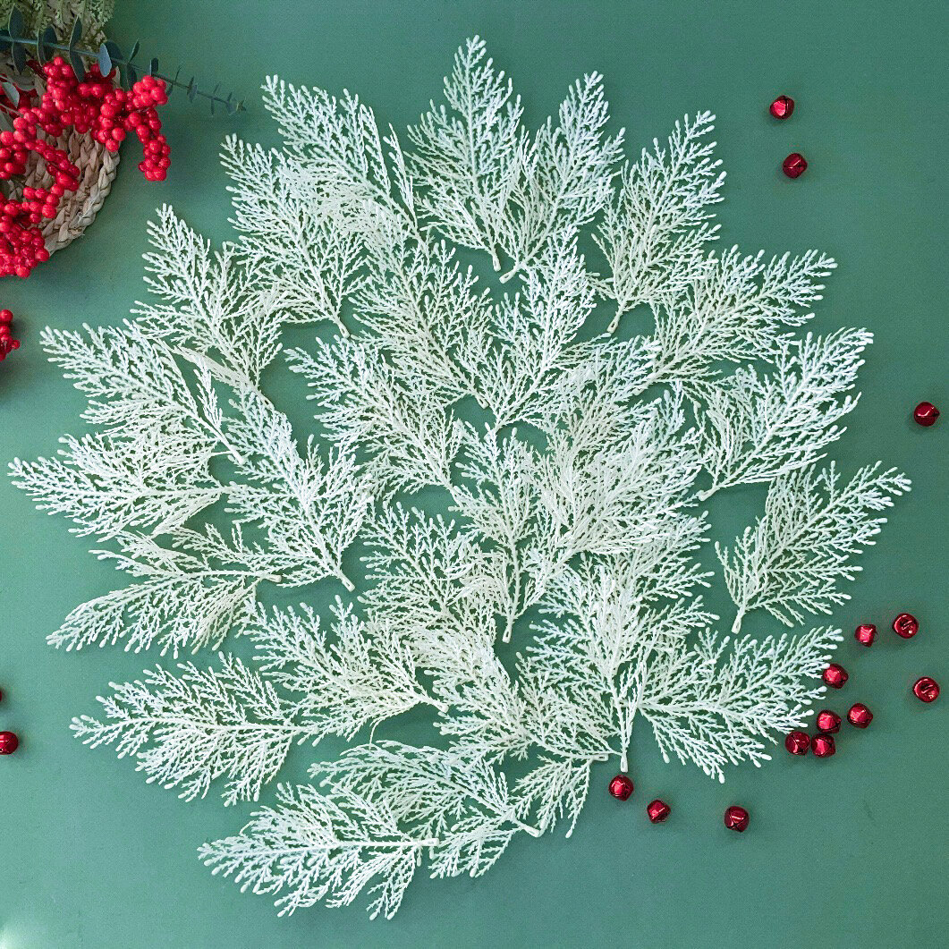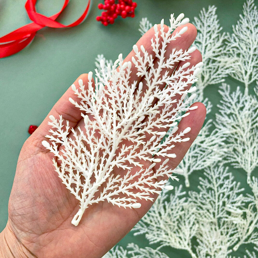 Набор травяных веточек, Туя, искусственная зелень, Белая, 11,5*6 см, набор 50 штук.