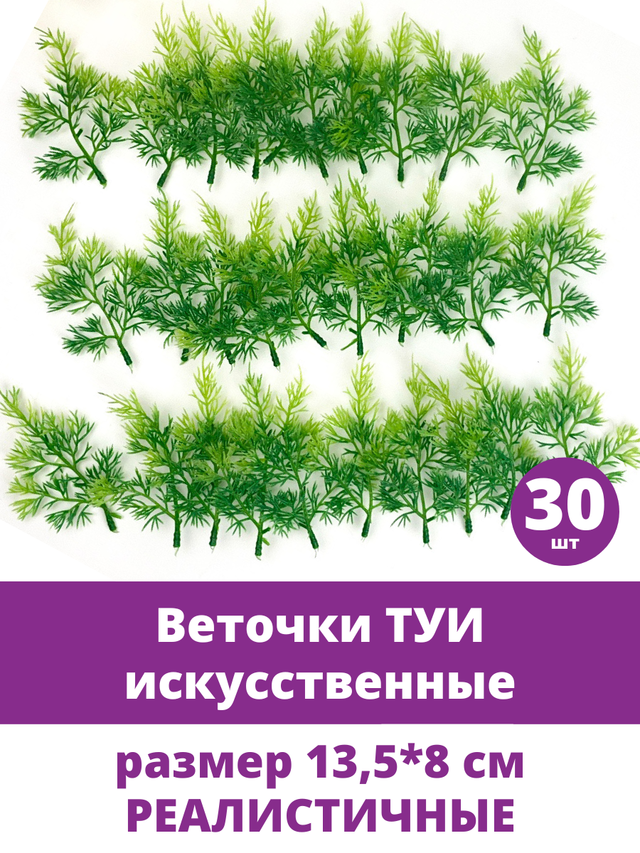 Набор травяных веточек, Туя, Искусственная зелень, 12,5*8,5 см, набор 30 штук.