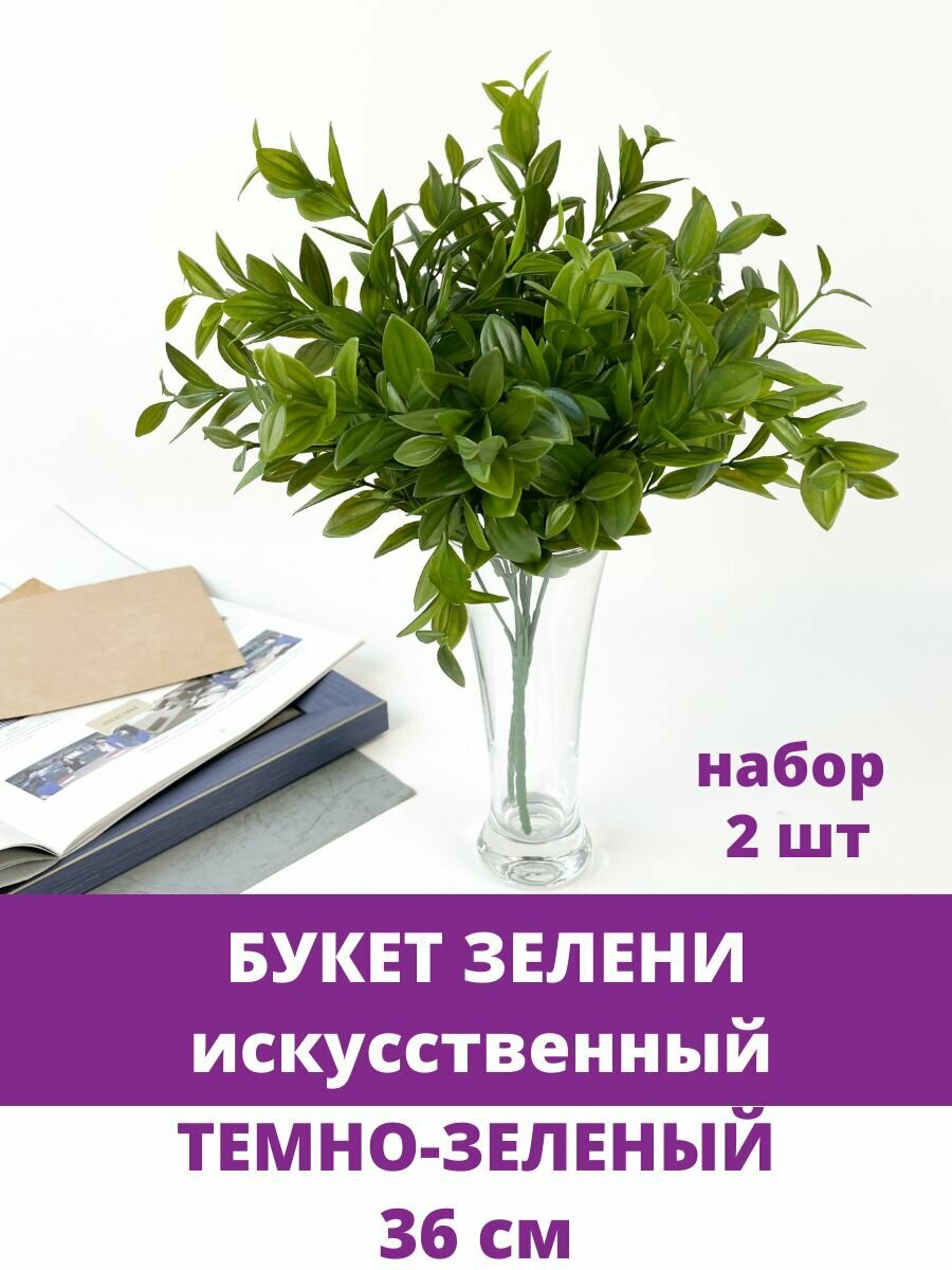 Купить Искусственная зелень декоративная, букет 36 см, цвет Темно-зеленый, набор 2 шт