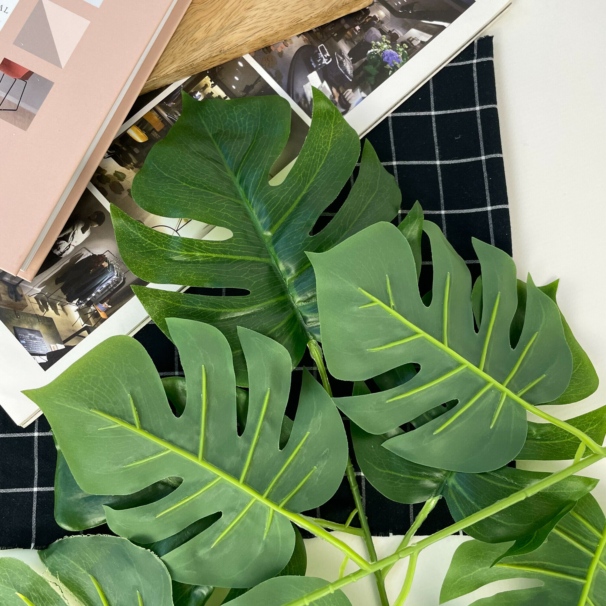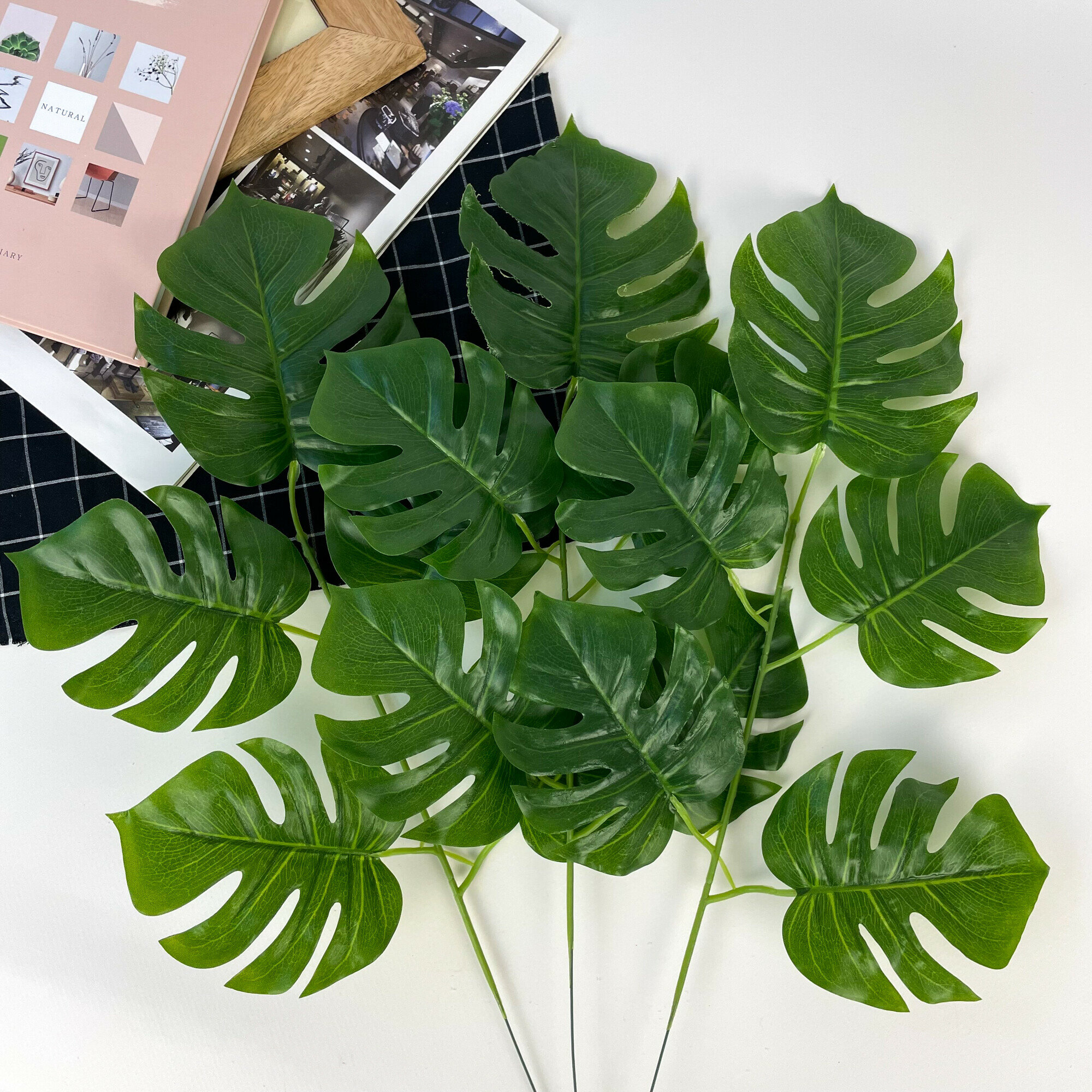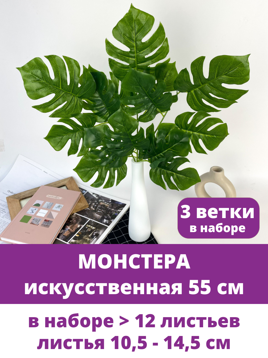 Купить Монстера, Куст 15 листьев, 55 см, искусственная зелень, цвет зеленый, 3 ветки.
