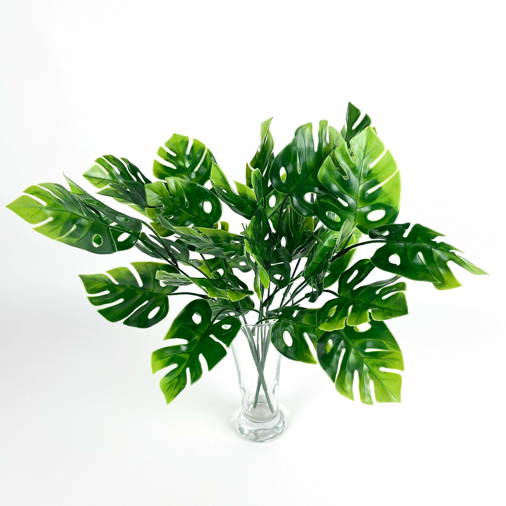 Купить Монстера, Куст 15 листьев, 40 см, искусственная зелень, цвет зеленый, 2 шт