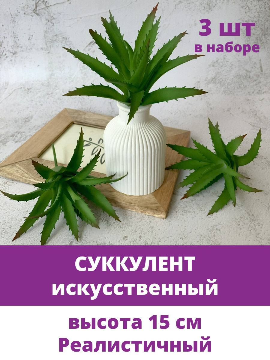 Купить Суккуленты искусственные, Зелень для декора, для флорариума, высота 15 см, набор 3 шт