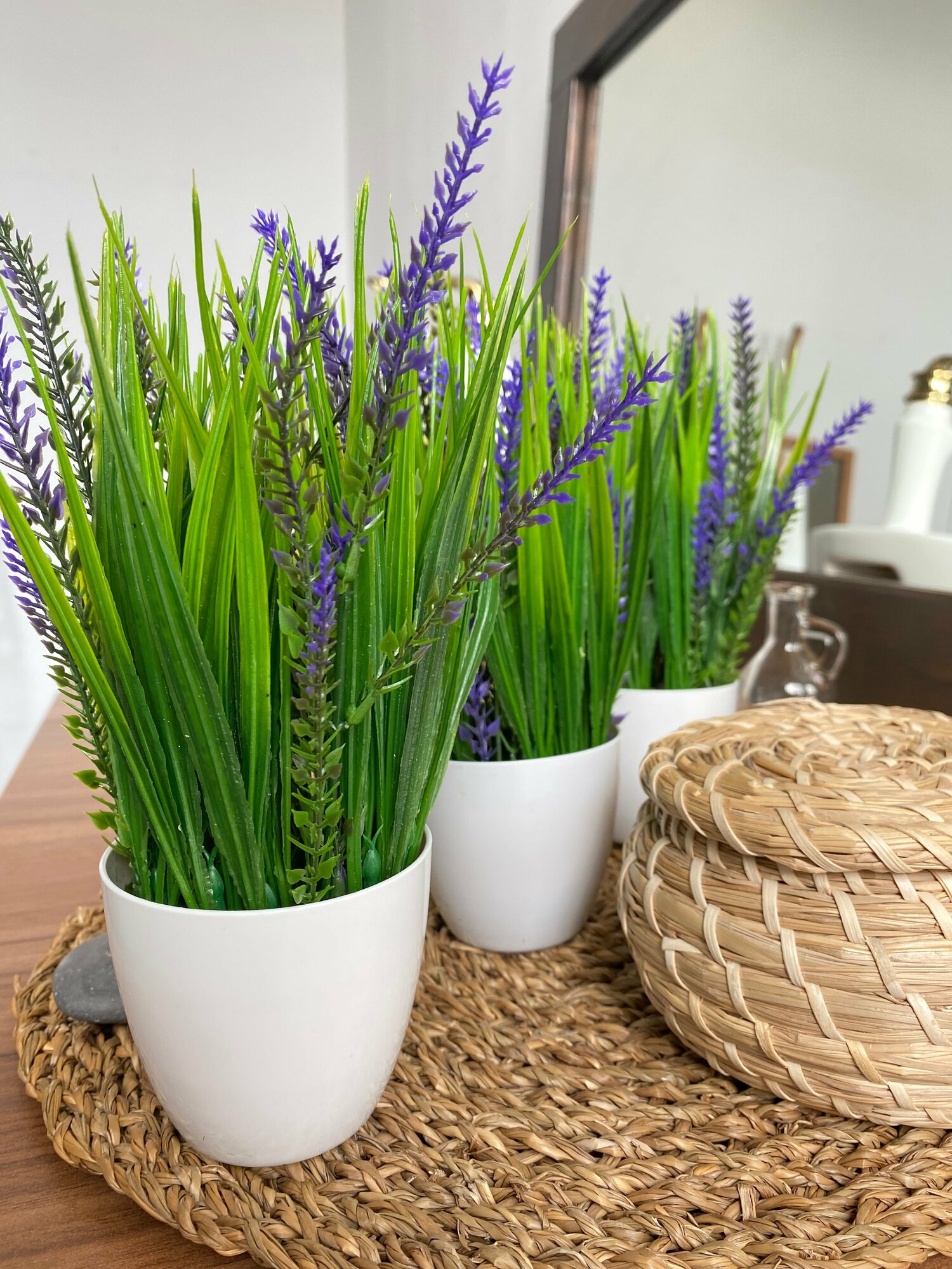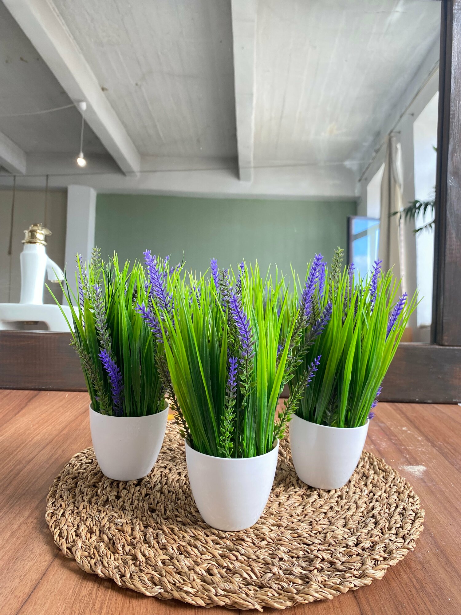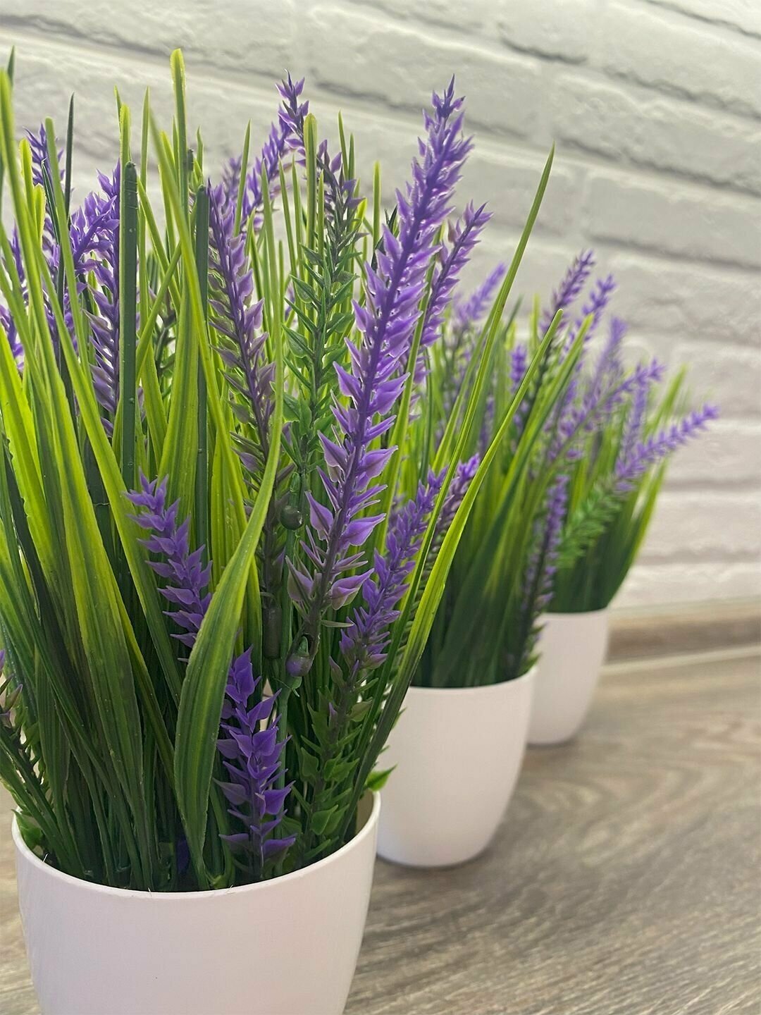 Искусственные цветы для декора в горшках набор 3 шт, трава осока и лаванда в кашпо