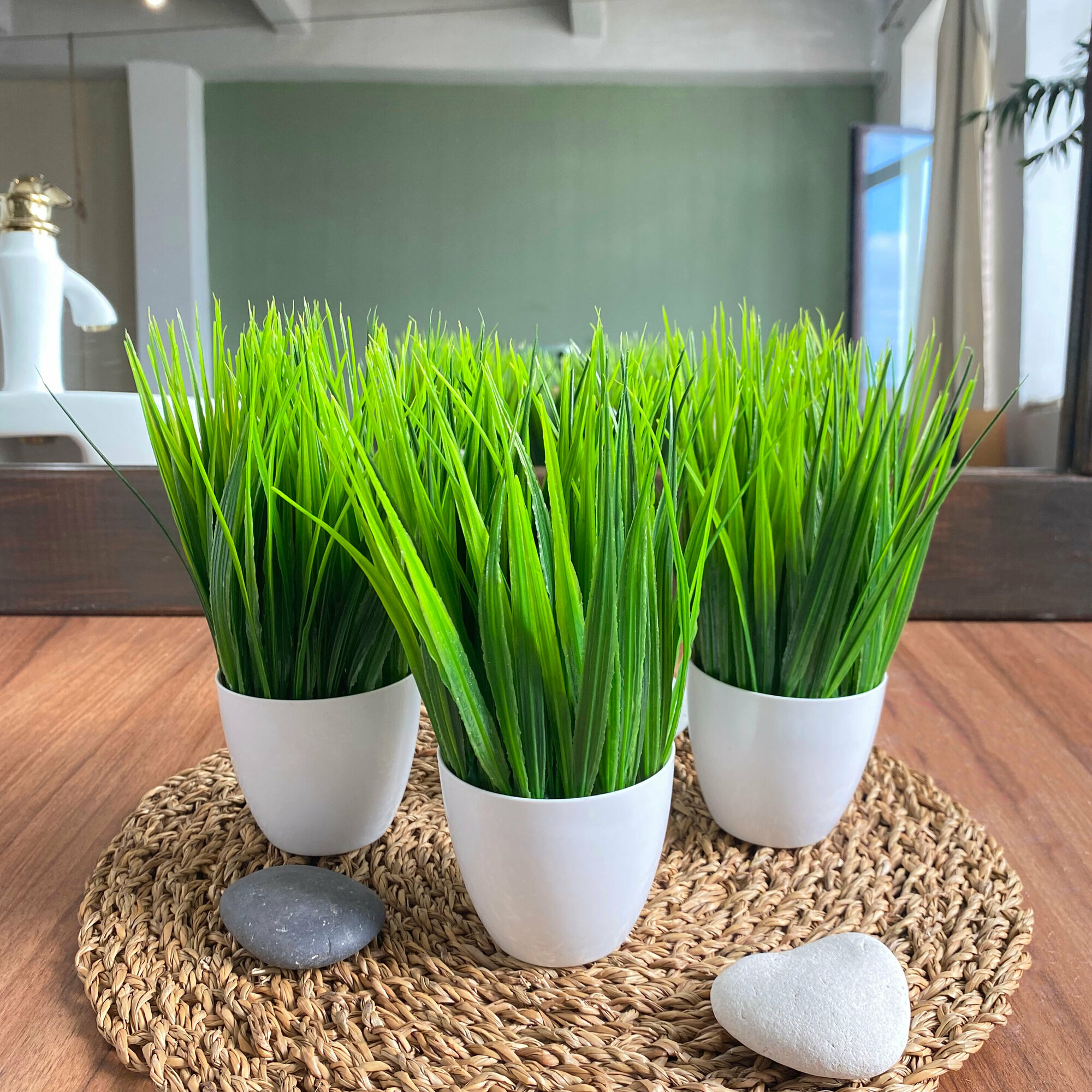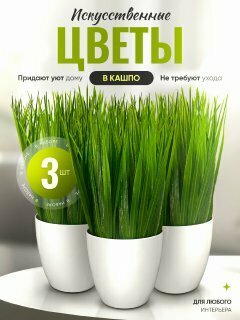 Искусственные цветы для декора в горшках набор 3 шт, трава осока в кашпо интересное: