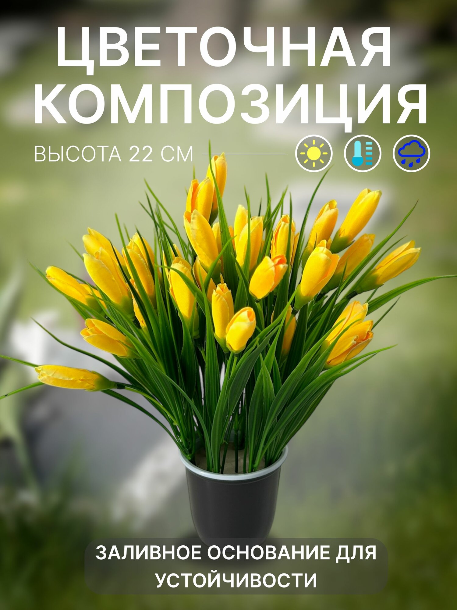 Искусственные цветы в горшке желтые / цветочная поляна для кладбища и декора, 22 см интересное: