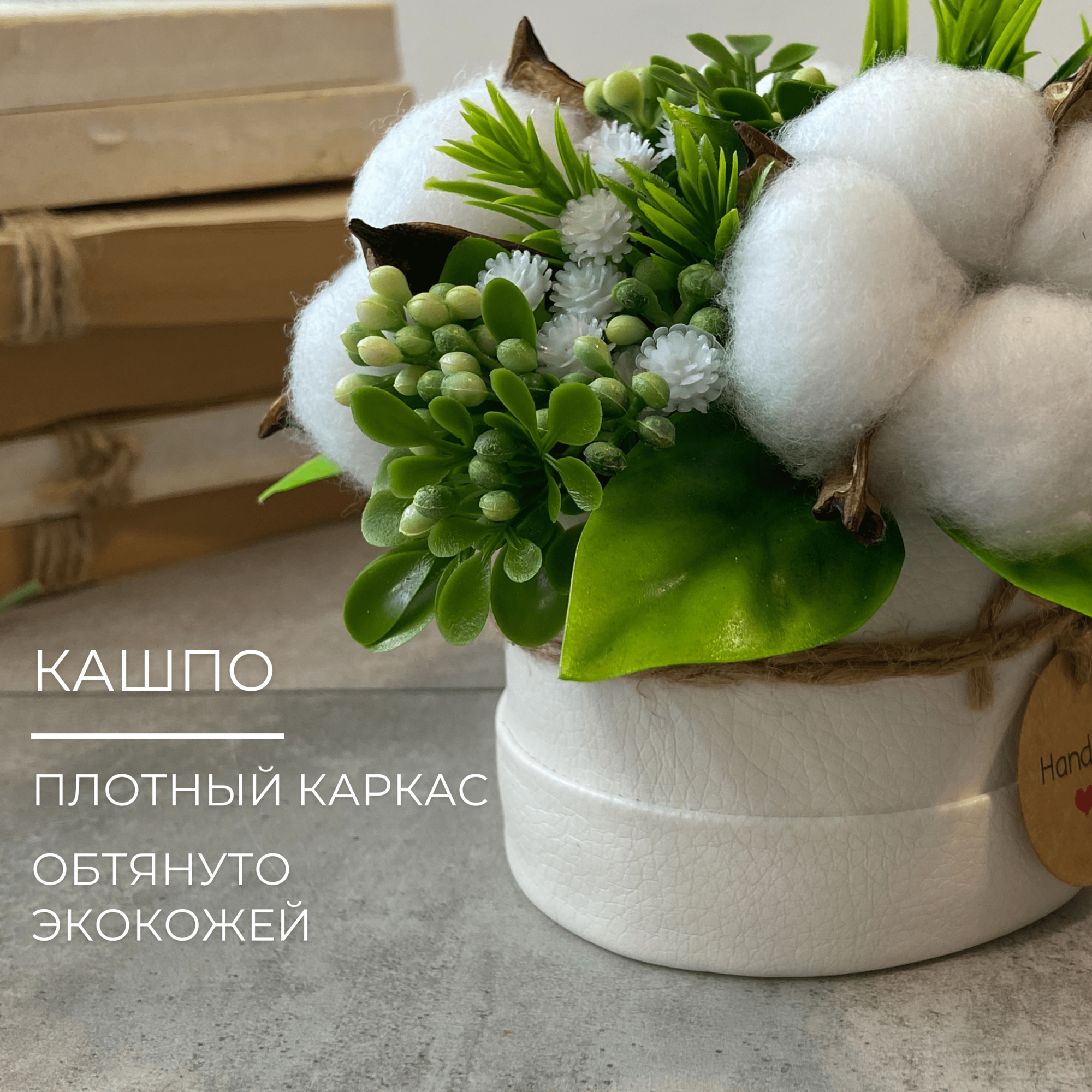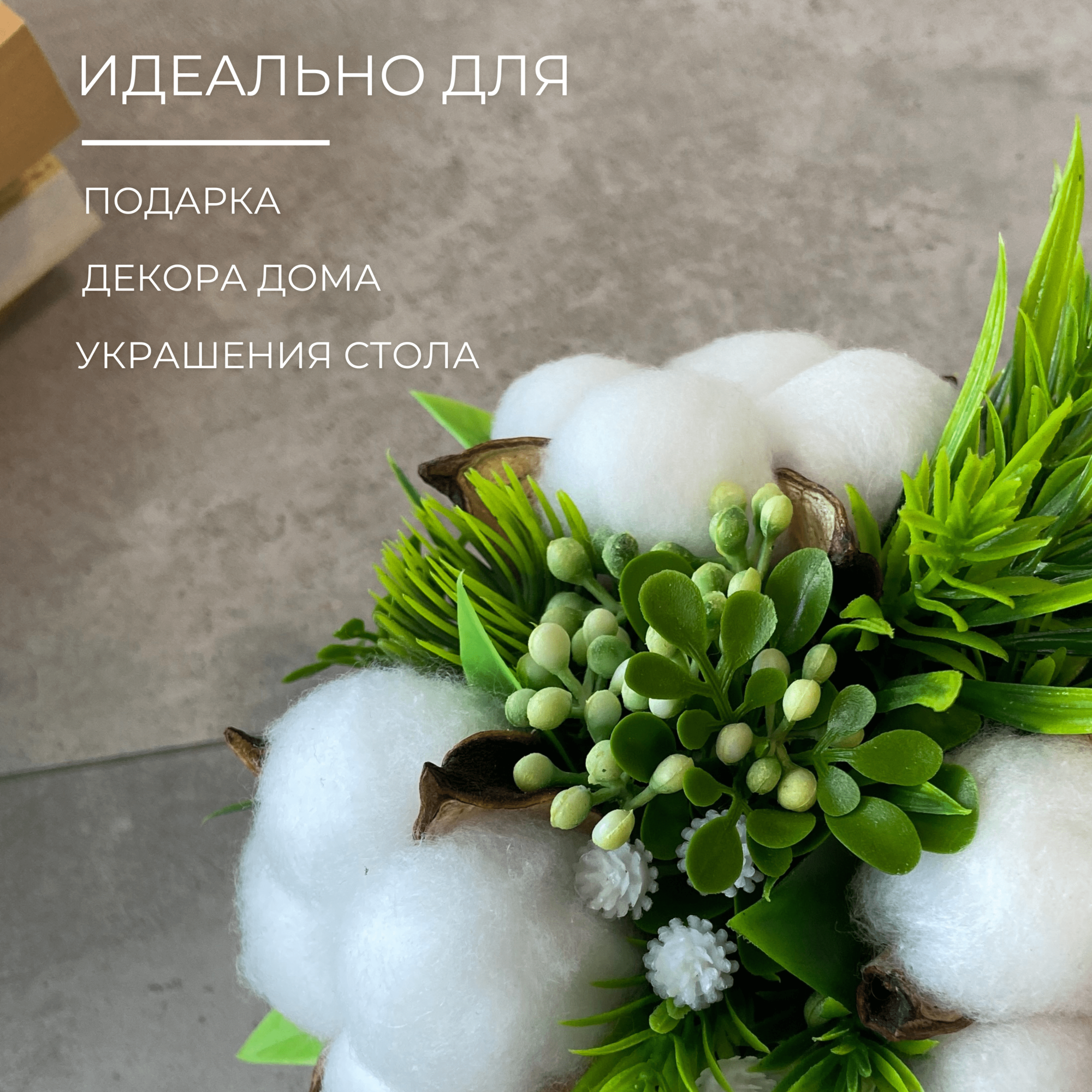 Хлопок сухоцвет для декора, декоративный букет искусственных цветов в кашпо, цветы в кашпо, 13 см, белый интересное: