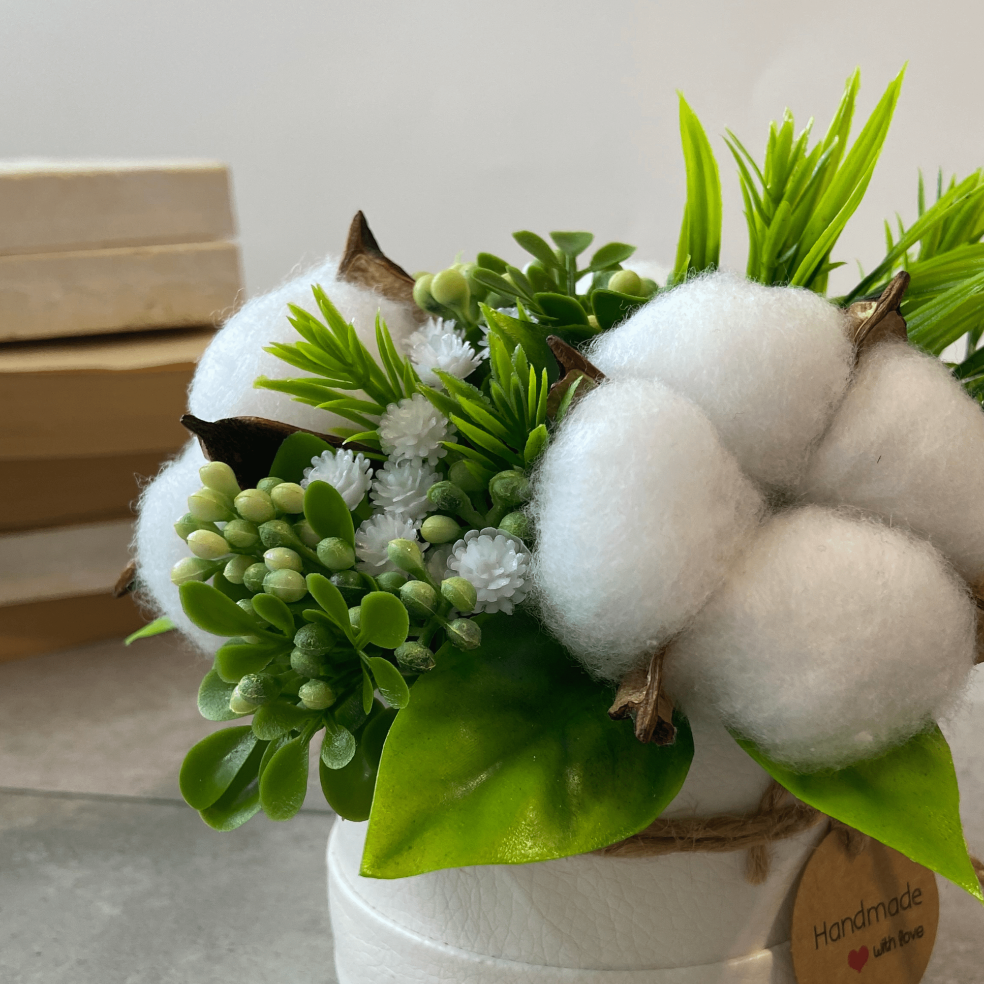 Купить Хлопок сухоцвет для декора, декоративный букет искусственных цветов в кашпо, цветы в кашпо, 13 см, белый