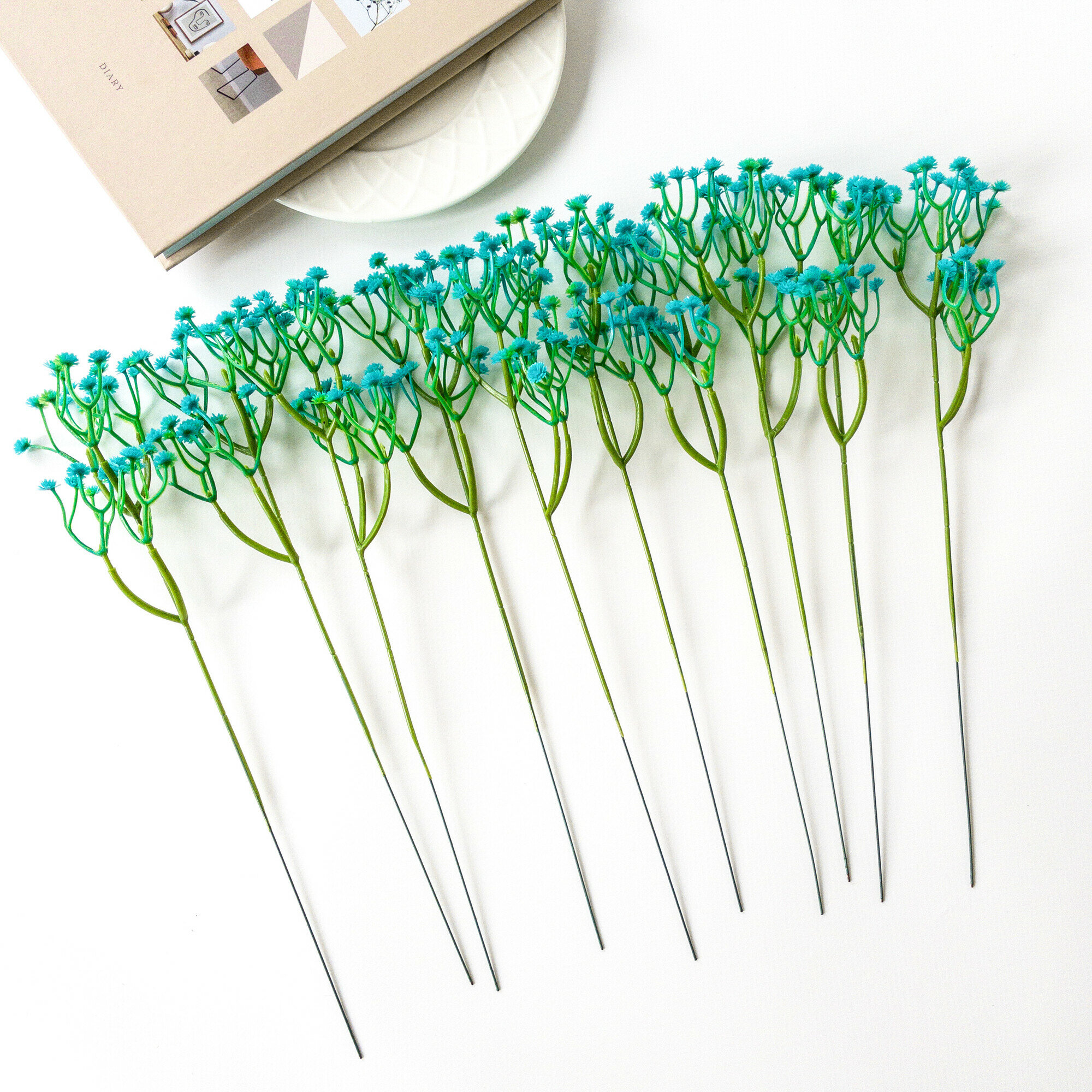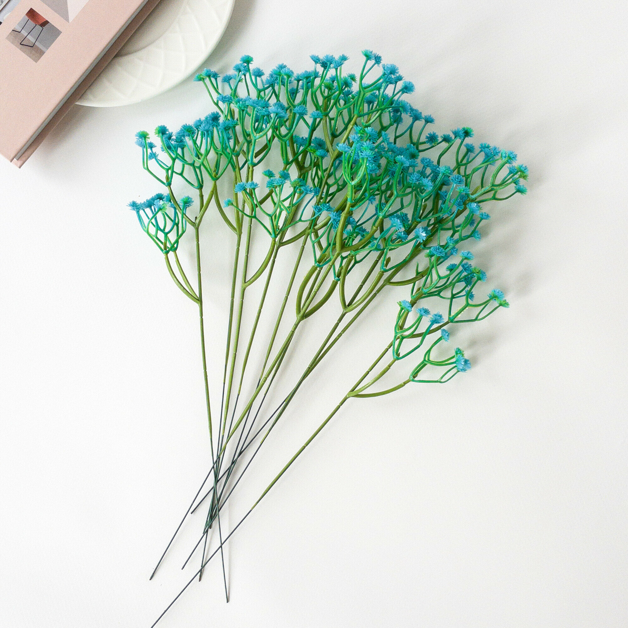 Купить Гипсофила искусственная, Декоративные цветы, Бирюзовая 29 см, 10 веточек в наборе.