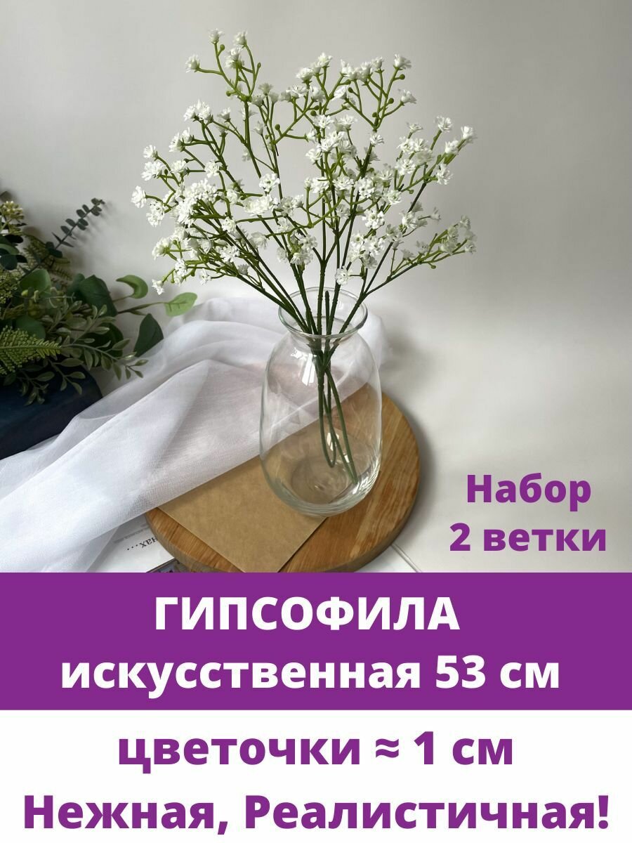 Купить Гипсофила искусственная, высококачественный пластик, на ветке, 53 см, набор 2 штуки.