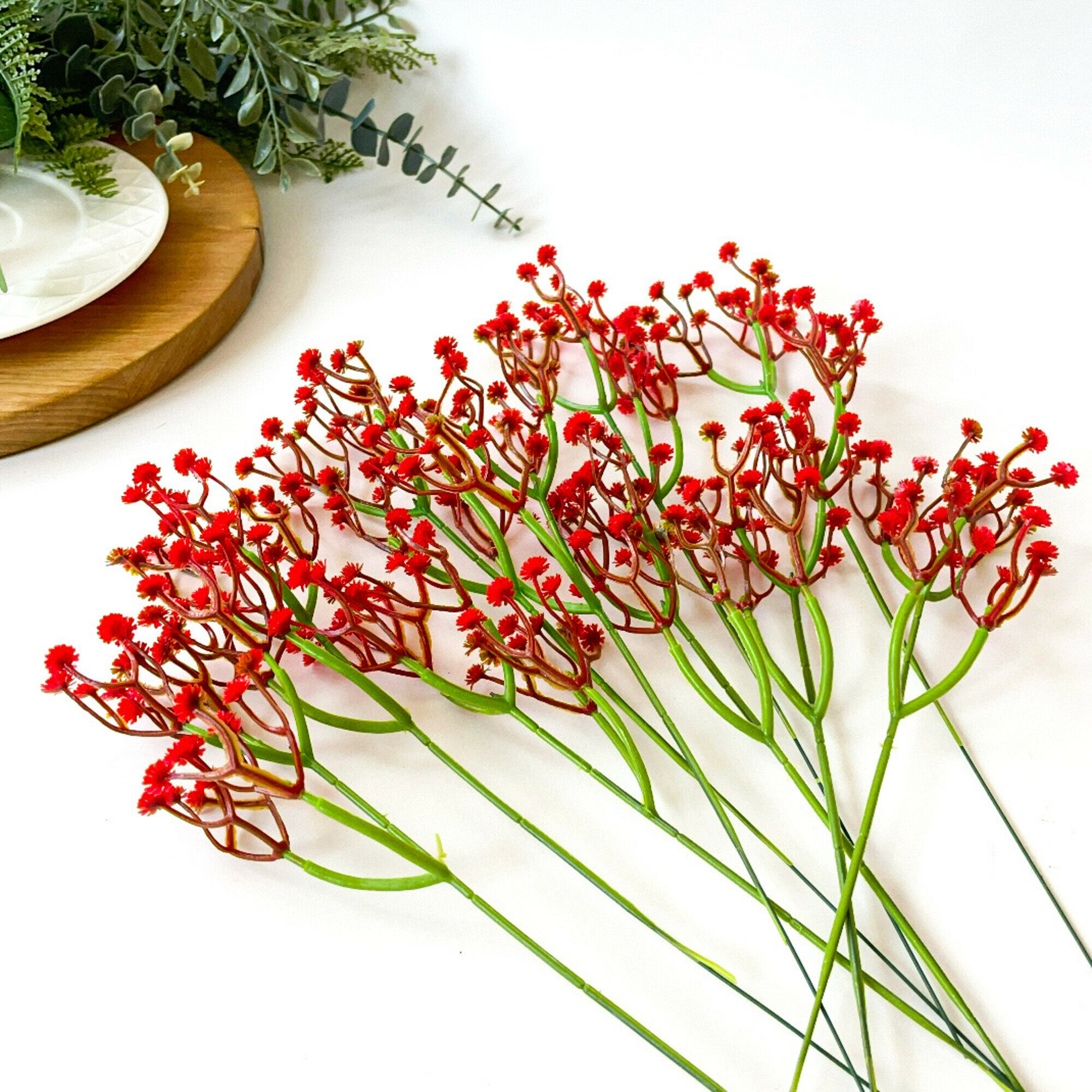 Купить Гипсофила искусственная, Декоративные цветы, Красная 28 см, 10 веточек в наборе.