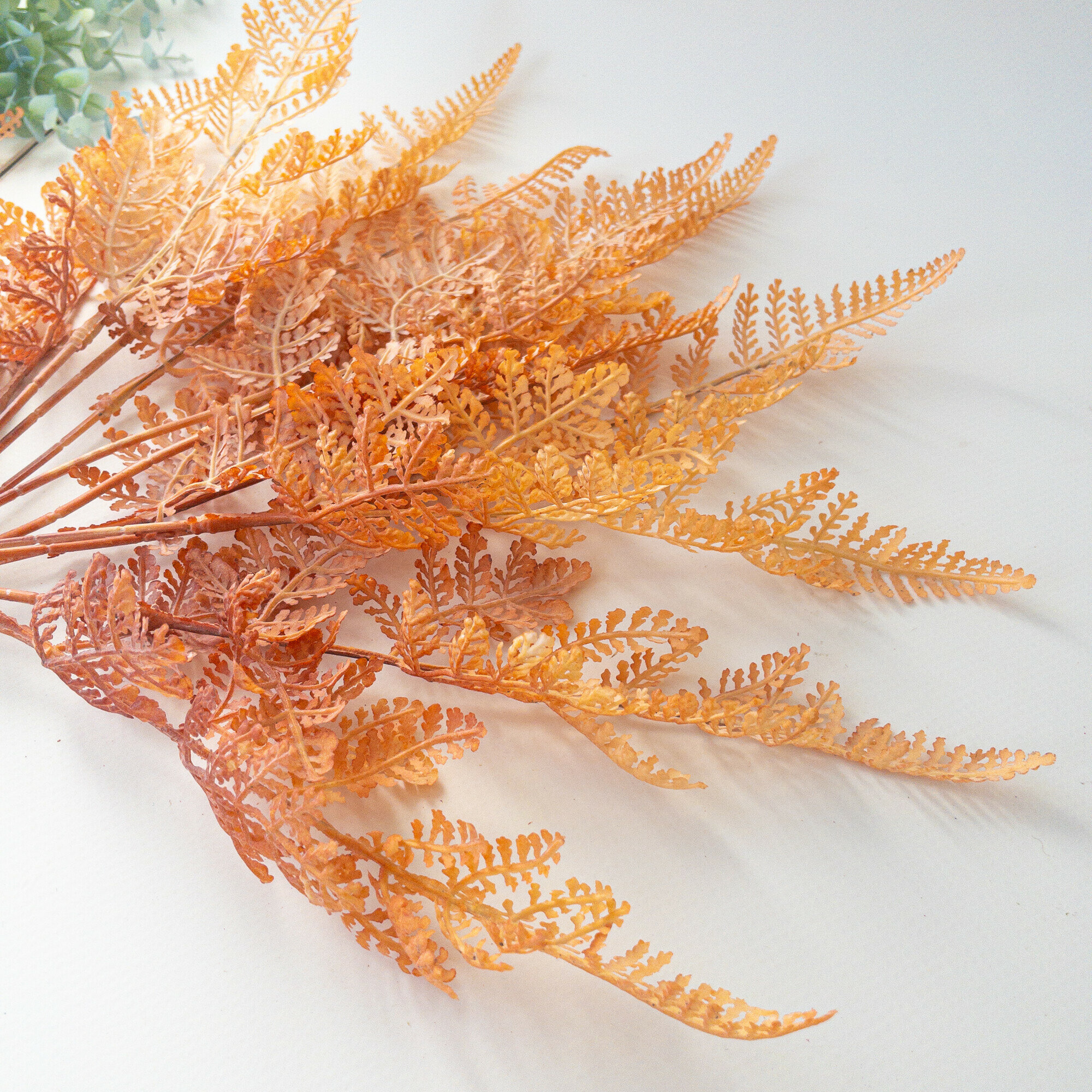 Папоротник искусственный, для декора и интерьера, Осенний декор, Оранжево-белый, 74 см, 2 ветки