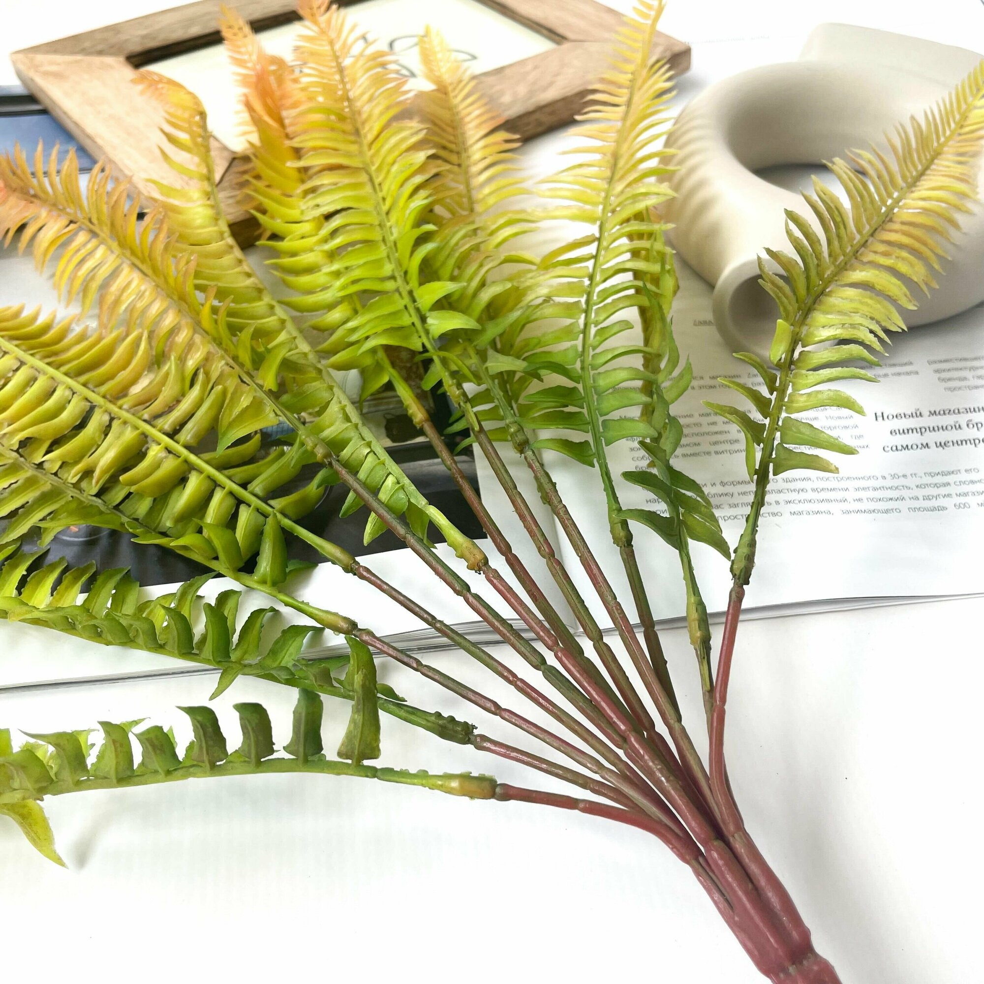 Купить Папоротник искусственный, оранжево-зеленый, букет 13 веток, 48 см.