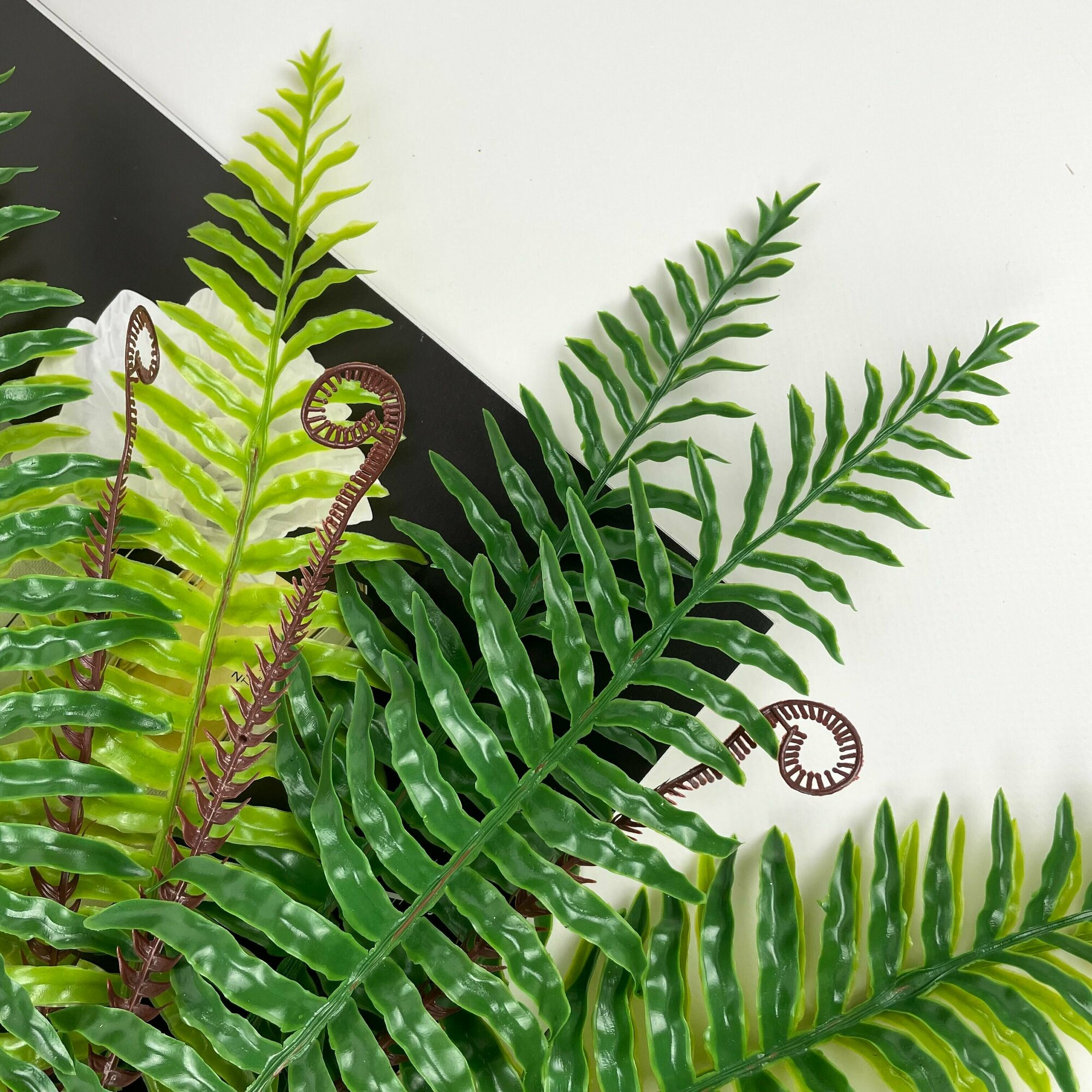 Папоротник Белый стильный, силиконовый, искусственная зелень, 48 см, набор 1 шт