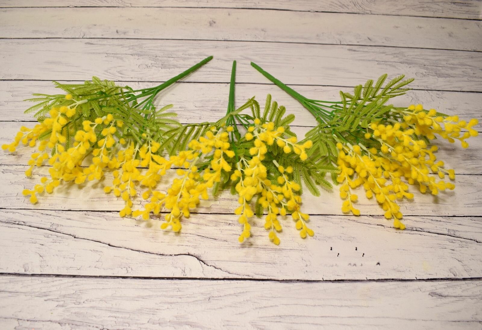 Купить Искусственные цветы Мимоза декоративная, 35 см 7 веточек, набор 3 букета.