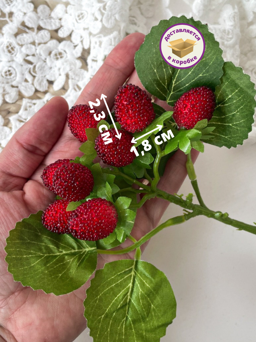 СохранитьЗемляника искусственная на ветке, реалистичная, 29,5 см, ягоды 2,3 см, 1 ветка (8-9 ягод) интересное: