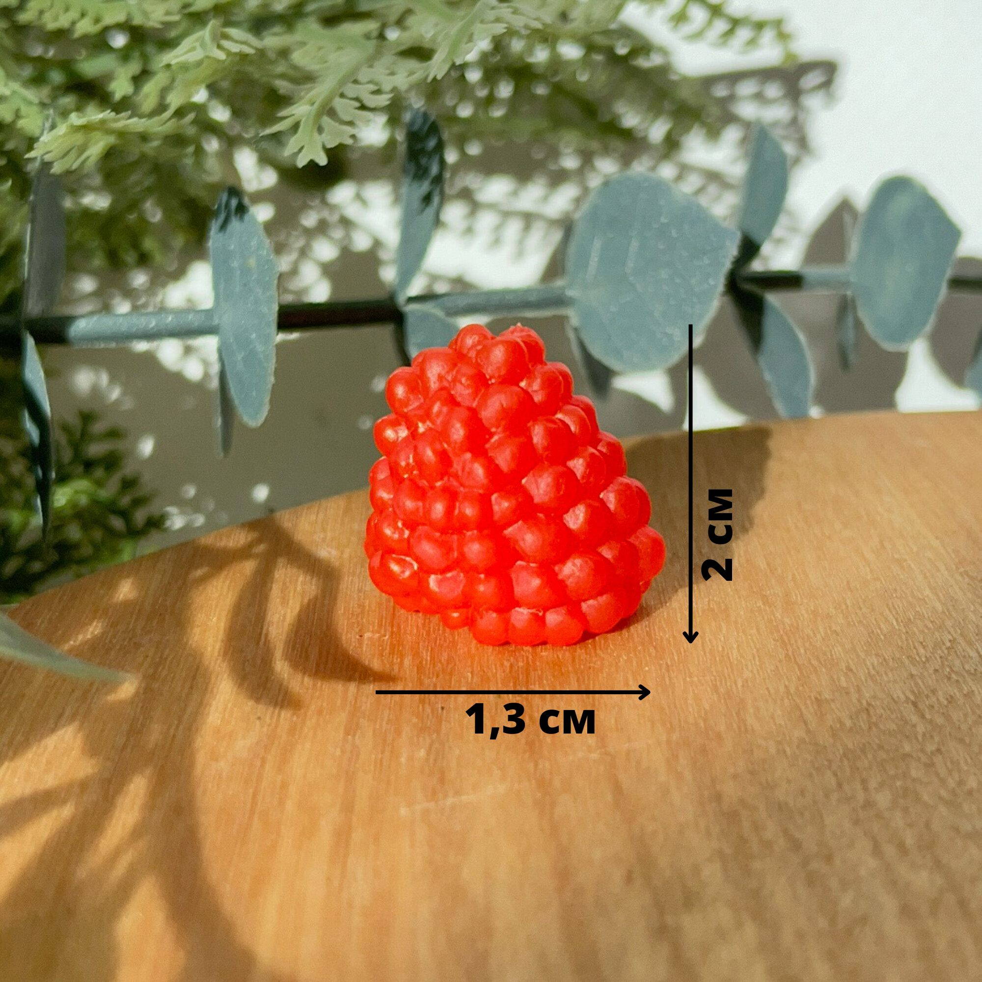 Купить Малина искусственная, ягода декоративная, реалистичная, размер 2*1,3 см, набор 15 штук