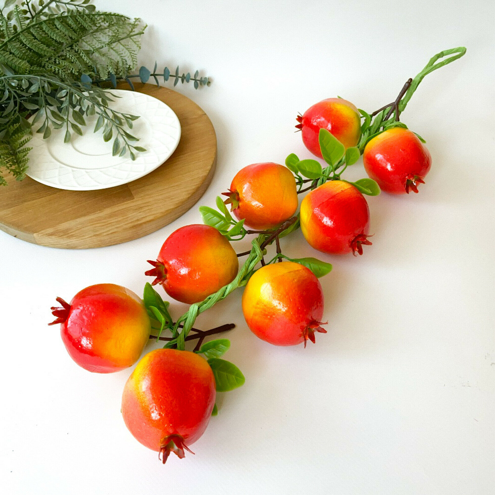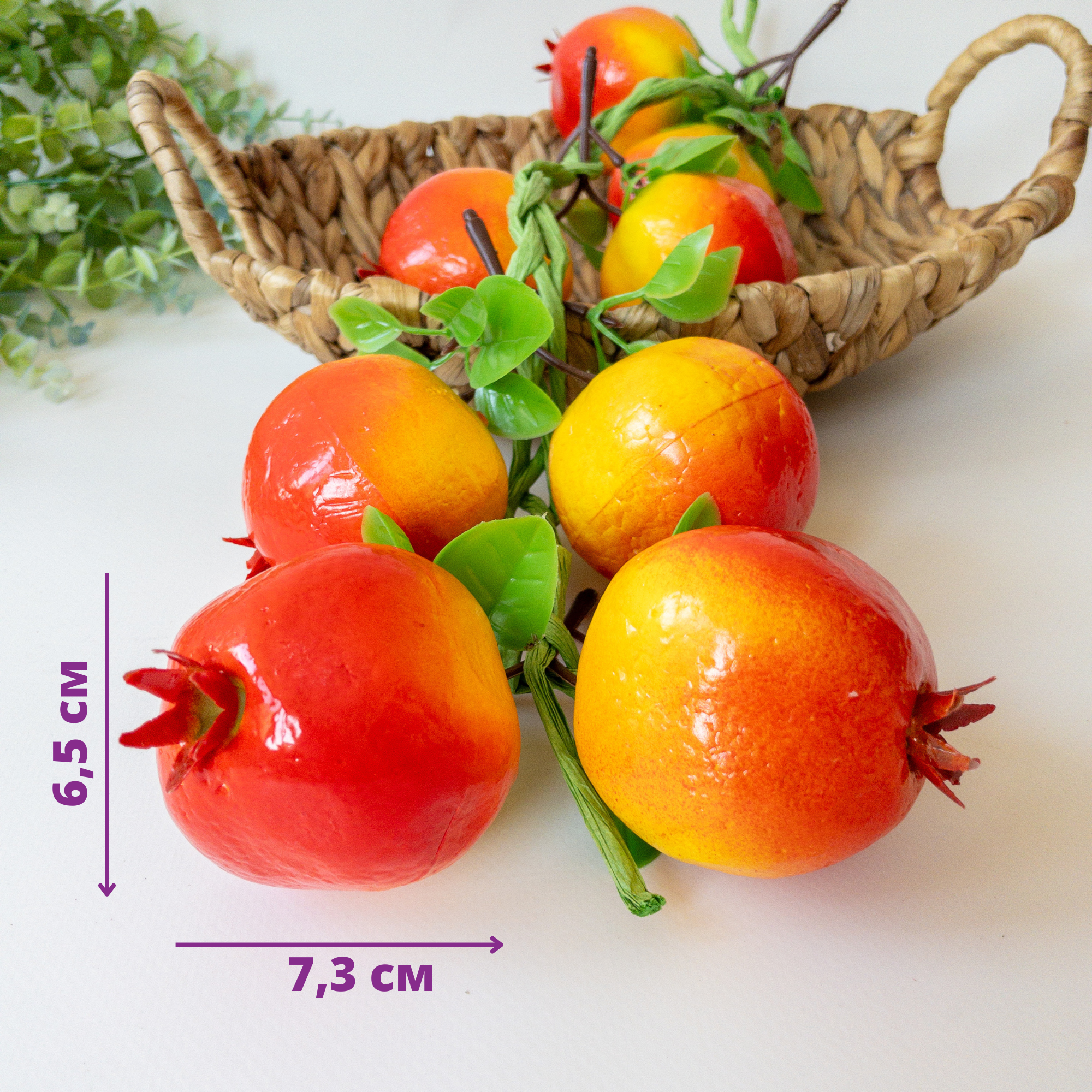 Купить Фрукты декоративные, Гранат искусственный, связка 52 см, размер 7,3*6,5 см, 1 связка