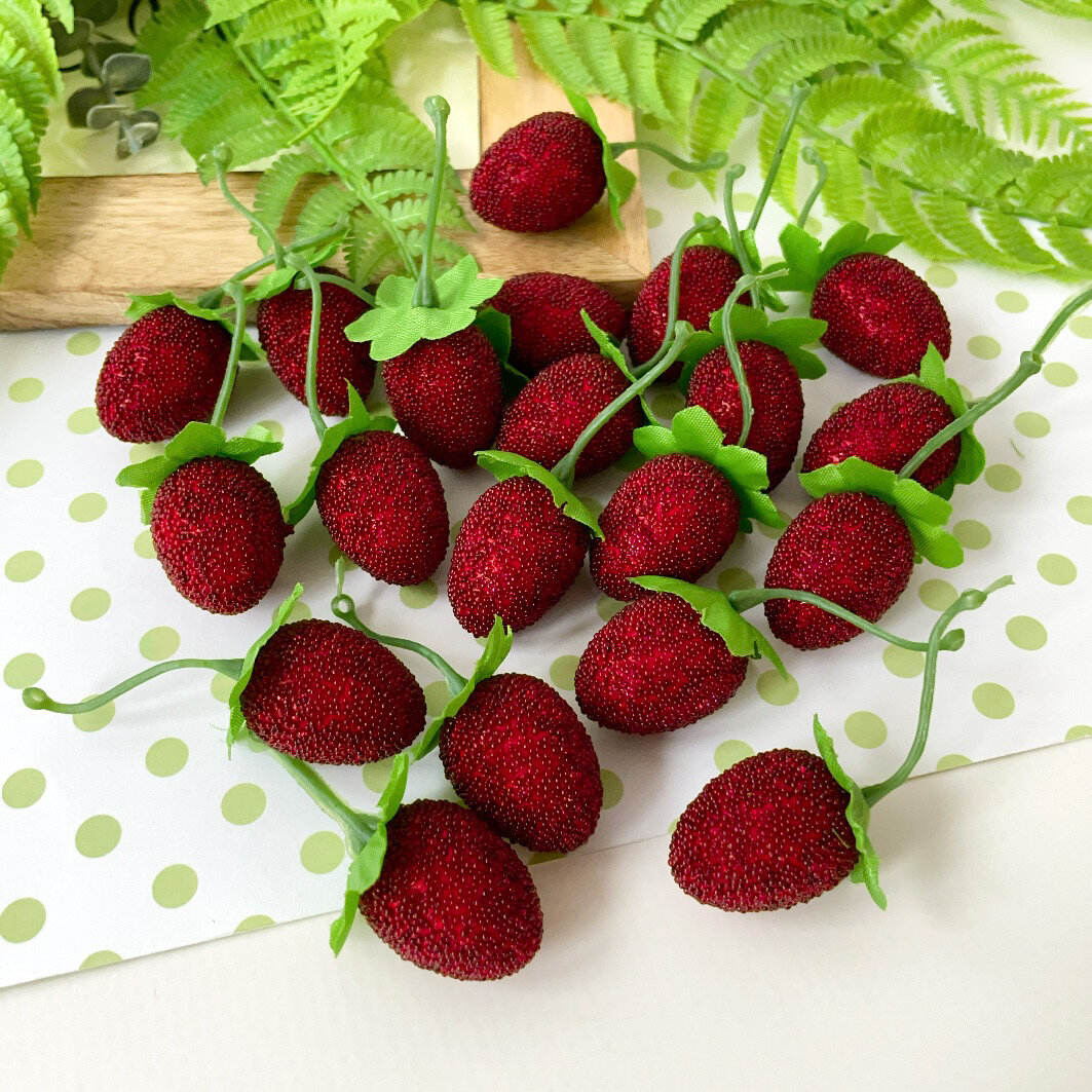Купить Ягоды искусственные для декора, Земляника, реалистичная, крупная размер 3*2,3 см, набор 20 штук