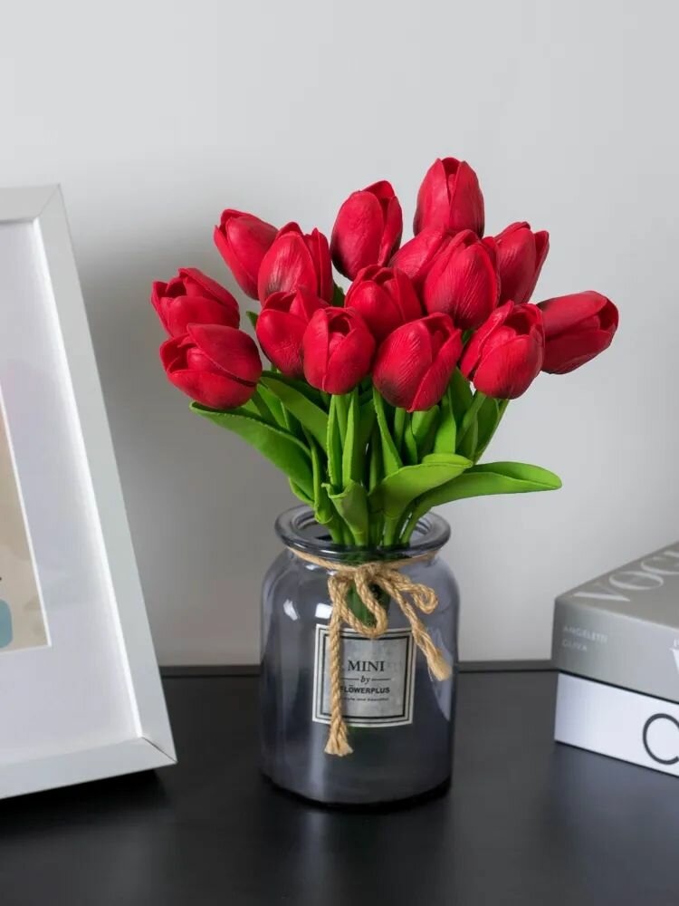 Искусственные цветы как натуральные из силикона Тюльпаны 10шт красные 33 см