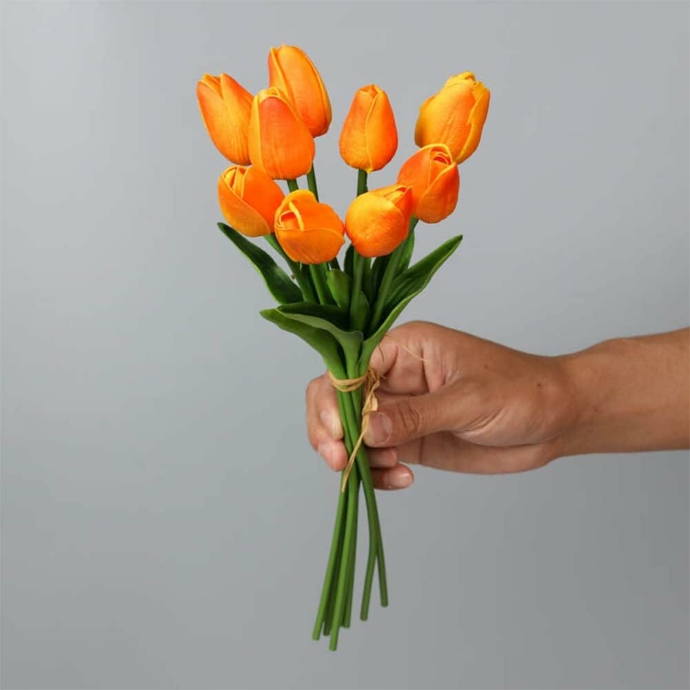 Купить Искусственные цветы как натуральные из силикона Тюльпаны 10шт оранжевые 33 см