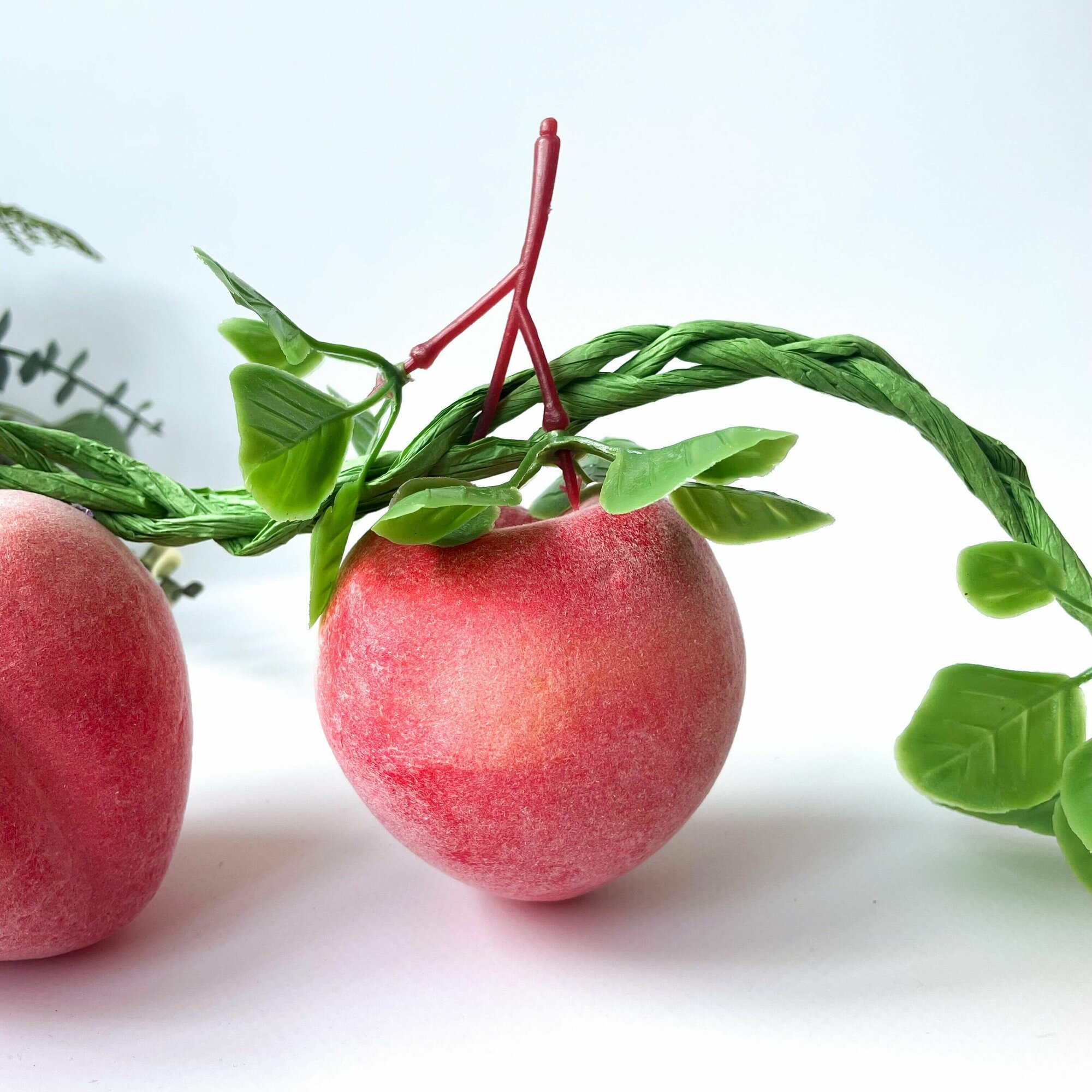 Купить Фрукты декоративные, муляжи, 4 Персика в связке, размер связки 54 см, персики 7,5 см