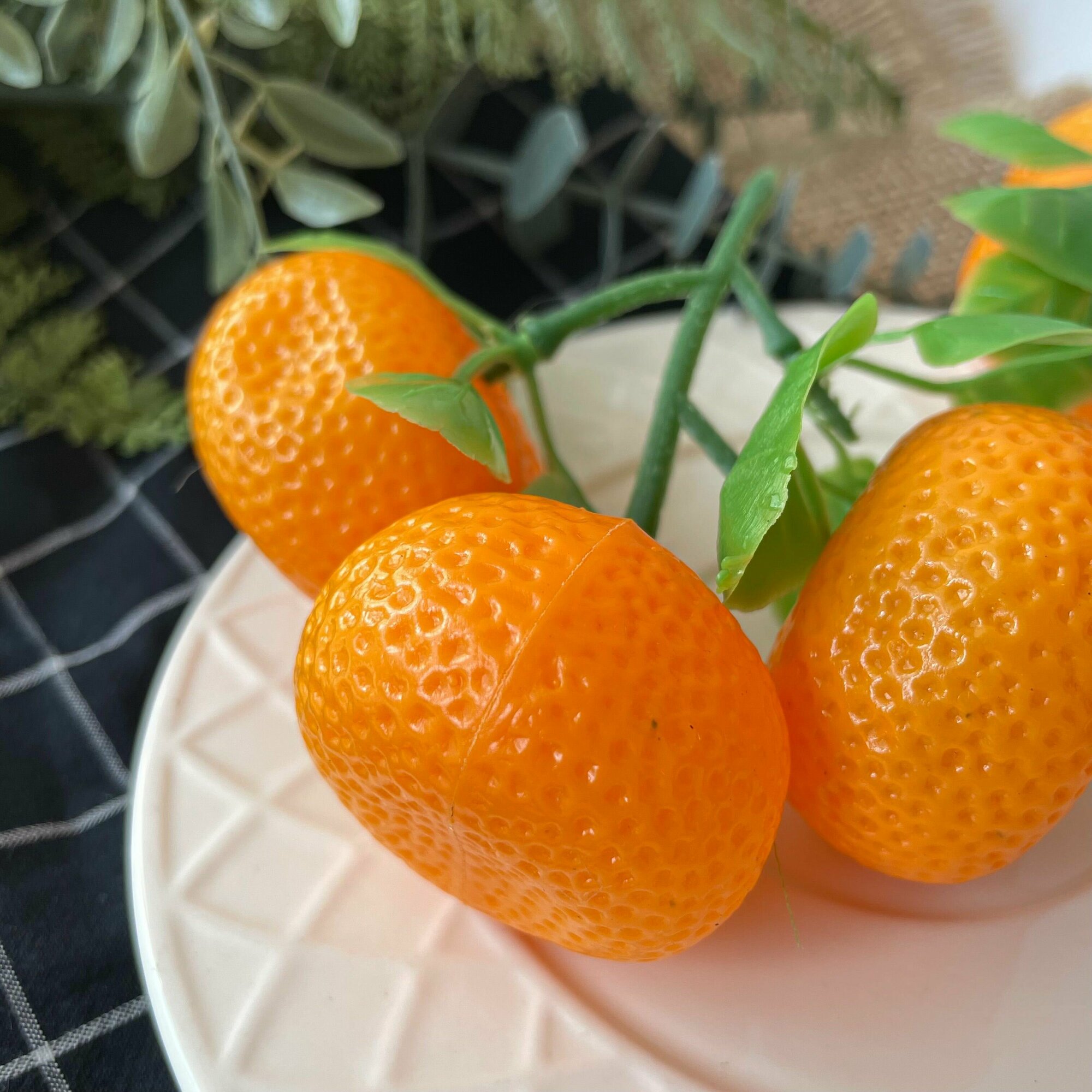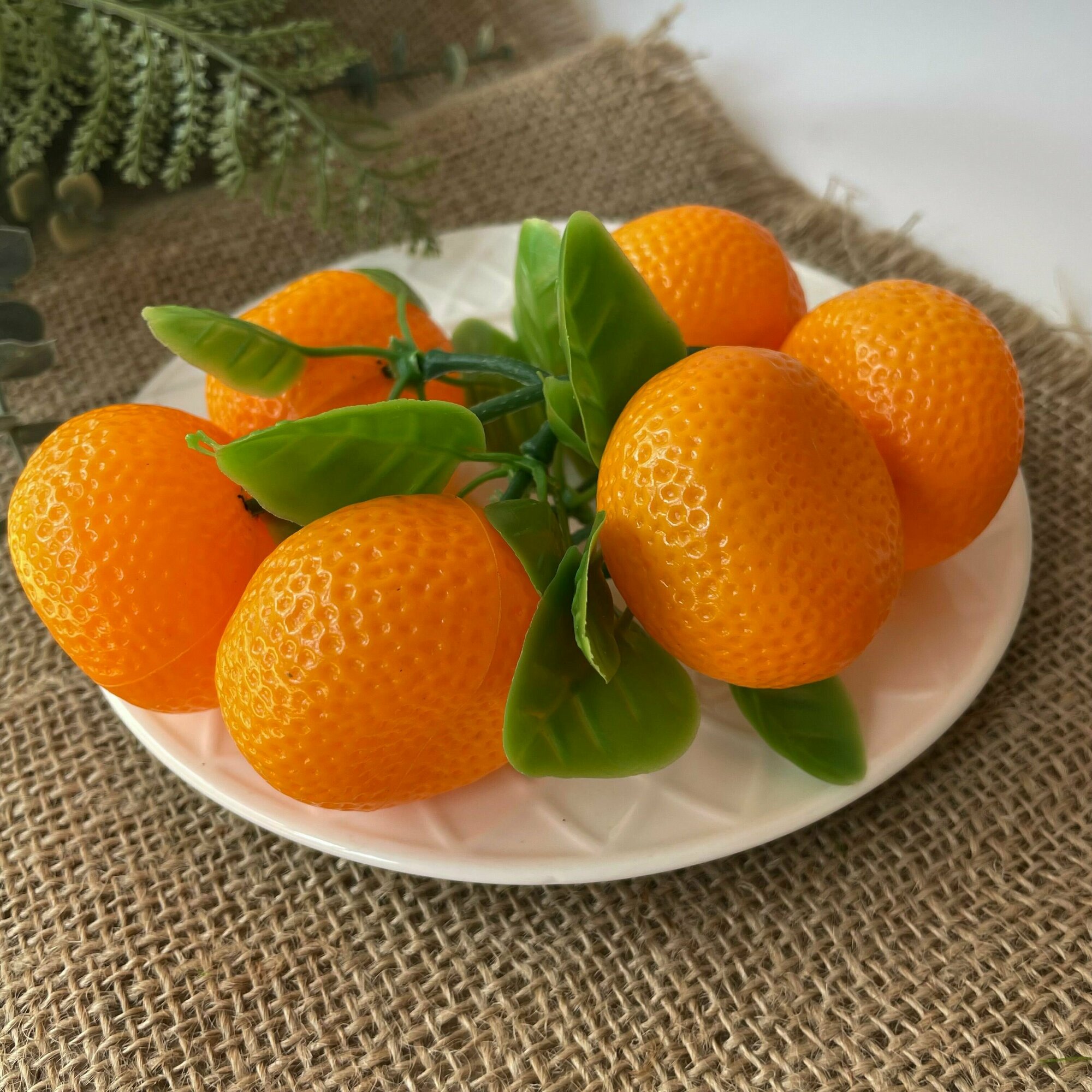 Купить Мандарины искусственные, 4,5*2,5 см, 3 штуки на ветке, набор 2 ветки. Фрукты искусственные