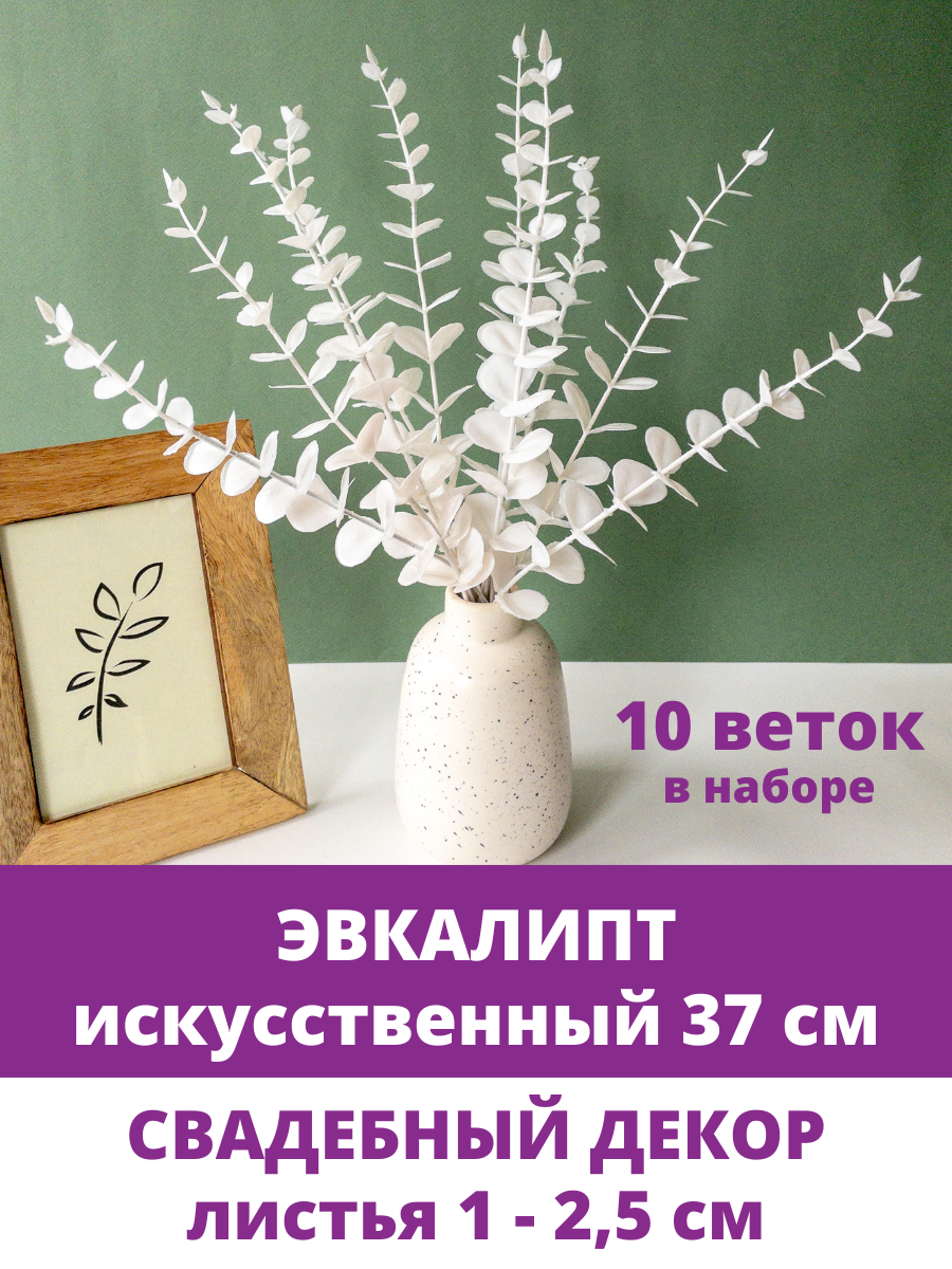 Эвкалипт искусственный, зелень для свадебного декора, Белый, 37 см, 10 веток интересное: