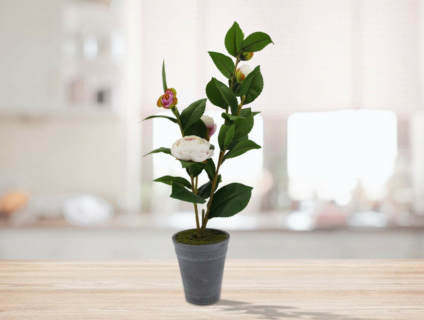 Купить Цветок декоративный Пион НатаМ в горшке 125х125х440 мм, бело-розовый