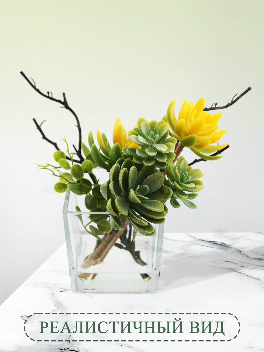 Искусственные цветы Суккуленты НатаМ для декора интерьера в вазе, желтые