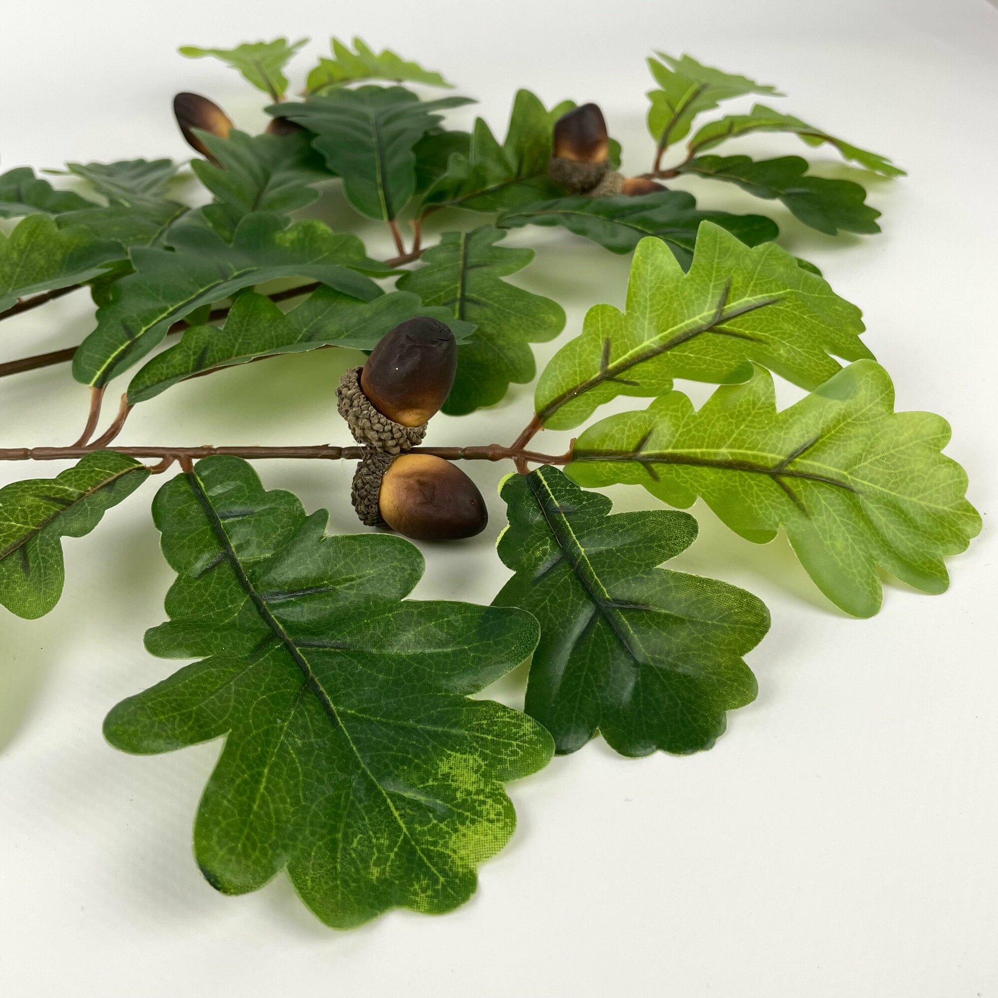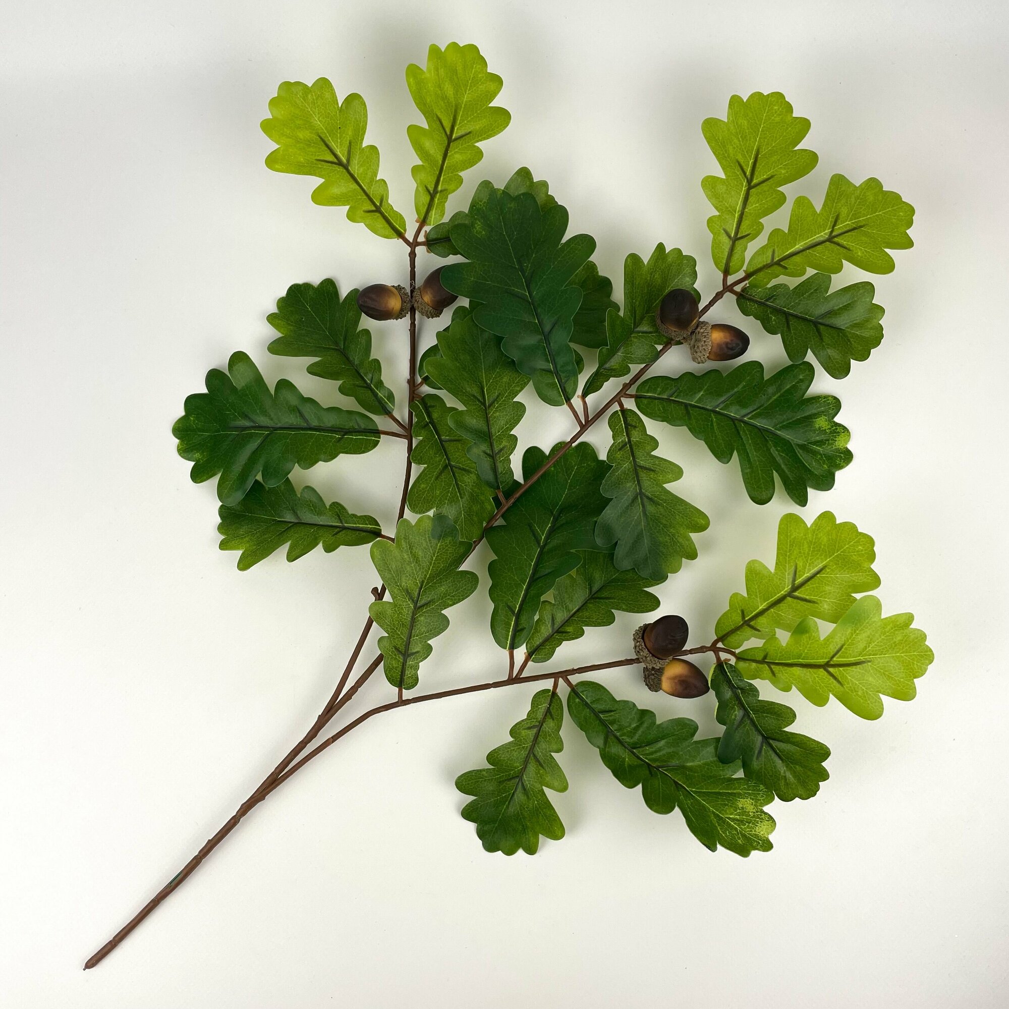 Купить Дуб зеленые листья на ветке, с желудями, искусственная зелень, ветка 60 см. Набор 2 шт