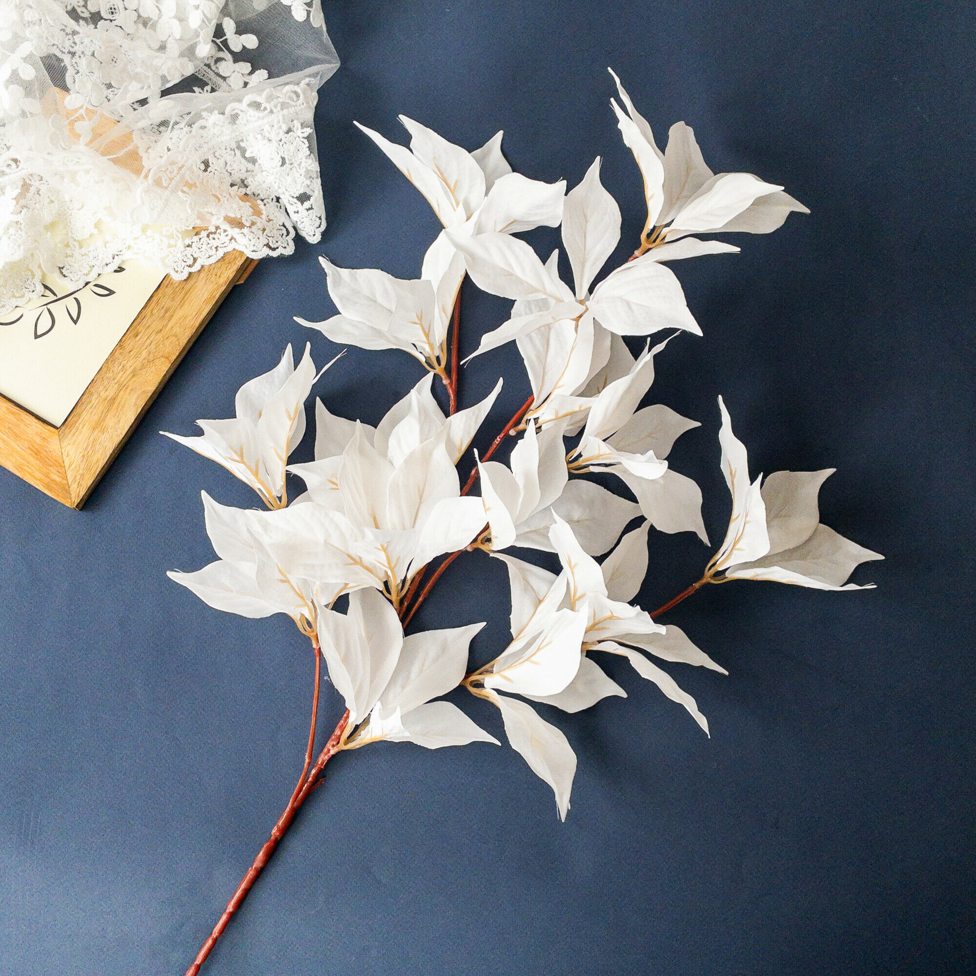 Ветки декоративные, искусственные листья, Свадебный декор, цвет Белый, ветка 97 см, в наборе 2 шт