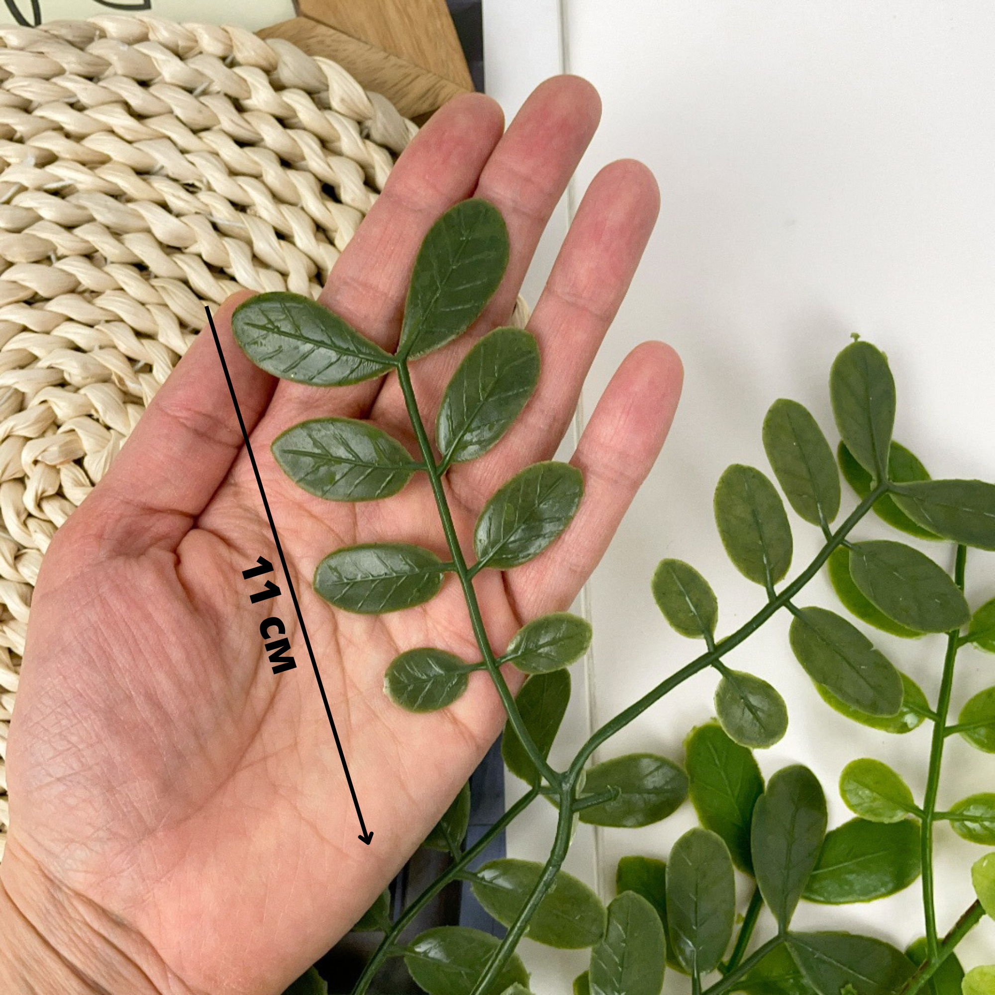 Листья Розы на ветке, искусственная зелень для свадебного декора, цвет Белый 80 см, 1 ветка