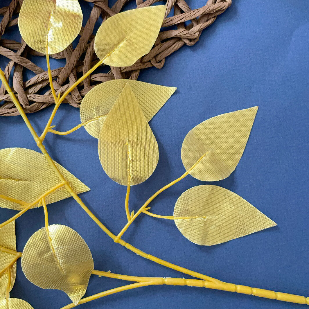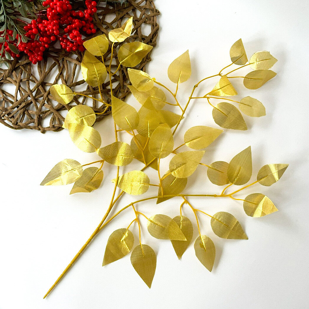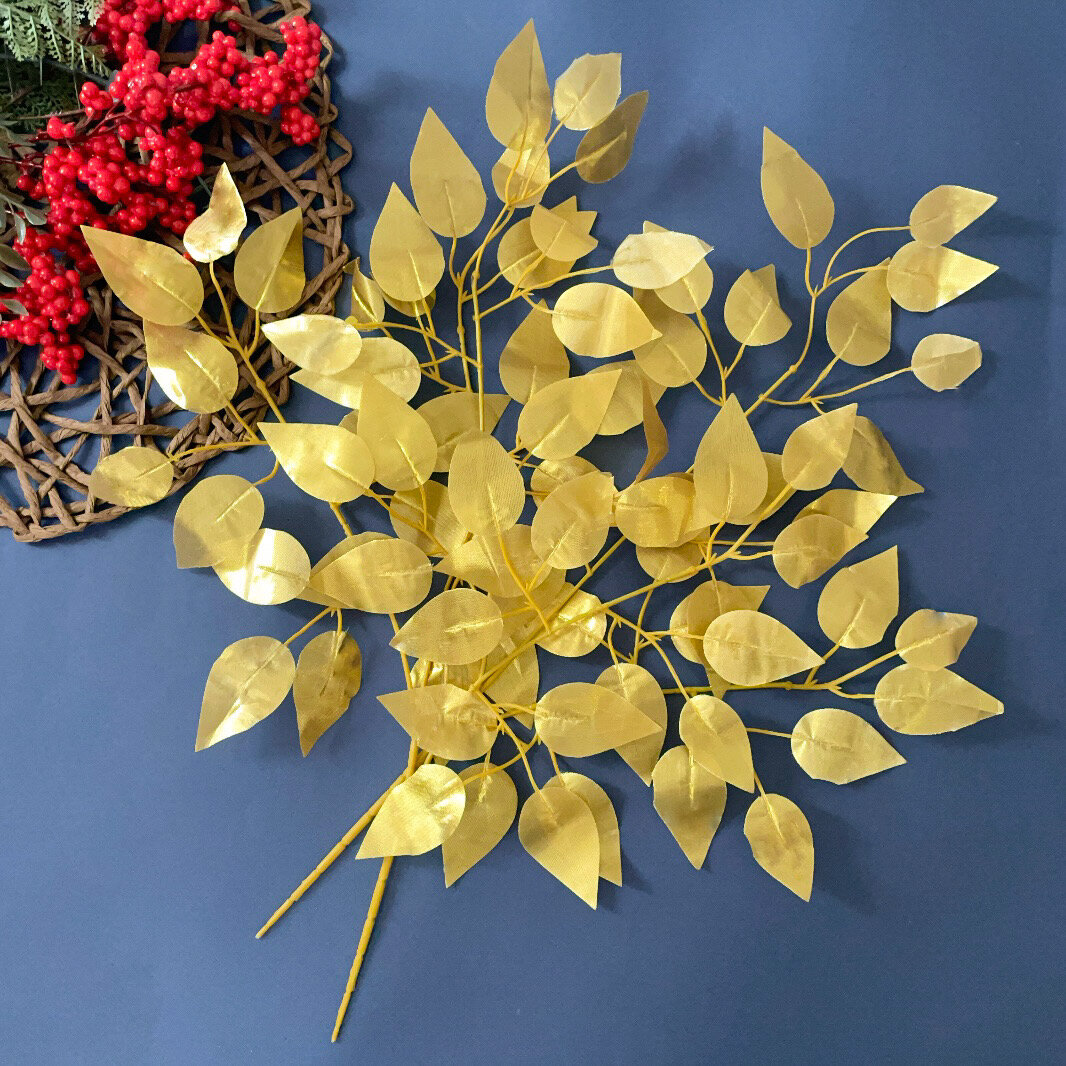 Купить Искусственные листья Фикуса, ветки новогодние для декора, цвет Золотой 54 см, 2 ветки