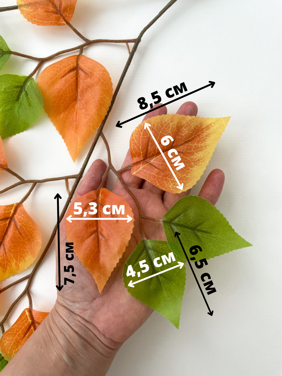 Ветки осенние для декора, искусственные листья, цвет Оранжевый, ветка 98 см, в наборе 2 шт