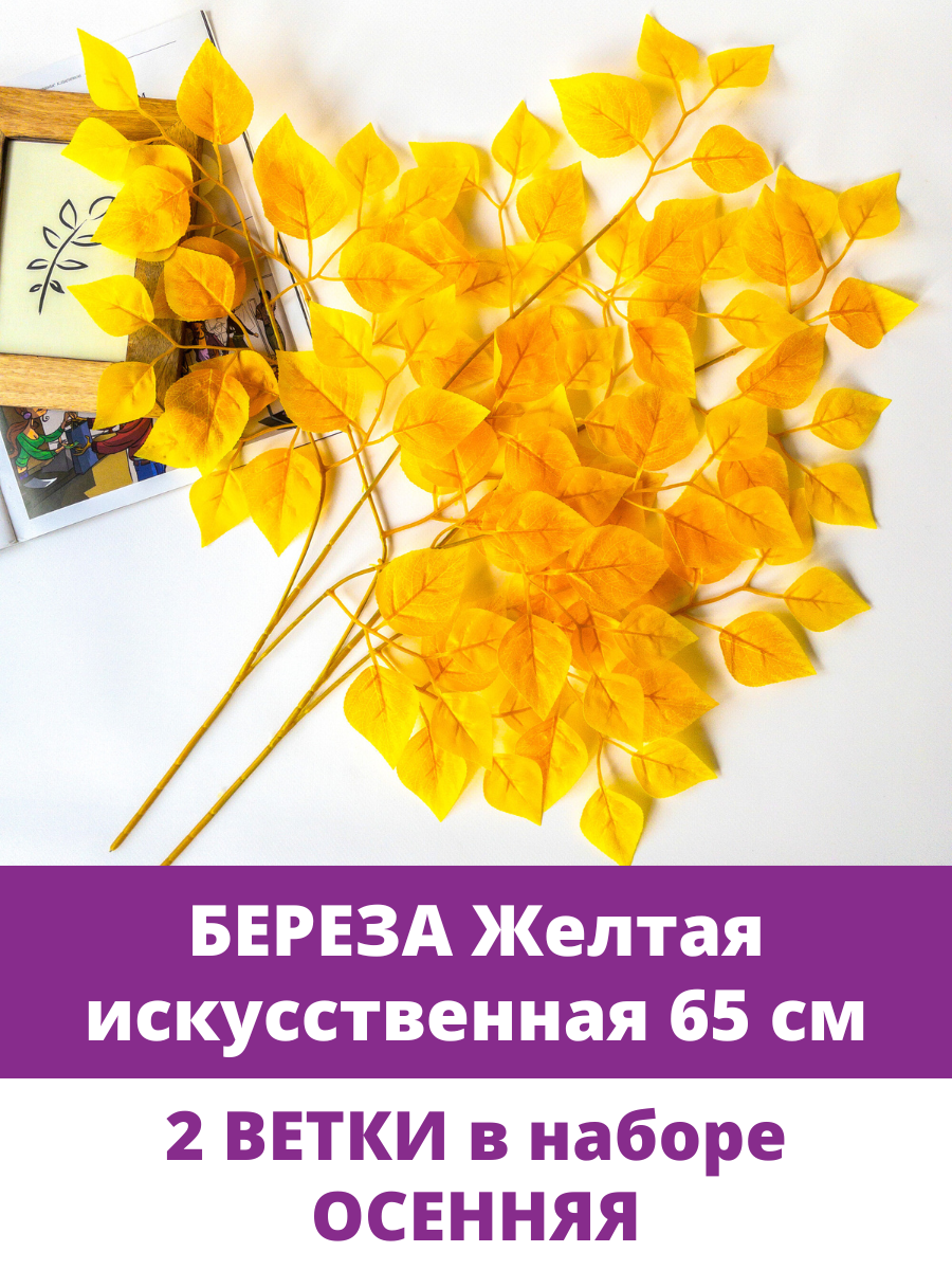 Купить Береза искусственная, осенне - желтая, ветка 65 см, 2 шт.