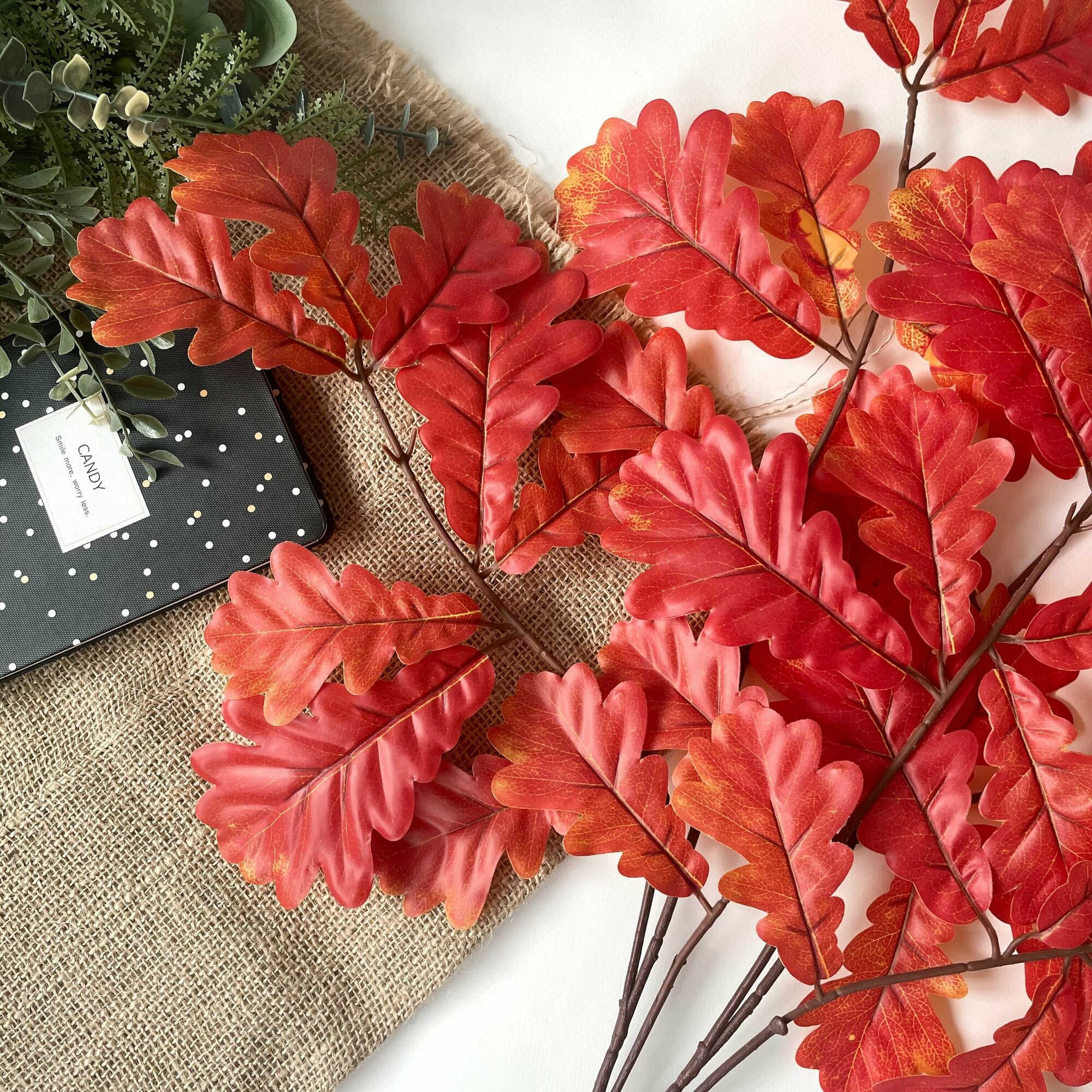 Купить Дубовые веткии осенние, красно - оранжевые листья , искусственная зелень, ветка 60 см. Набор 2 шт