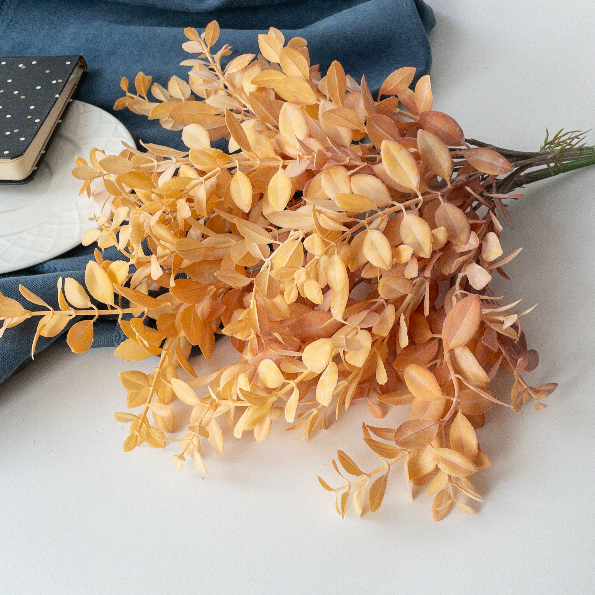 Искусственная зелень Брусничник, Осенний декор, Эффект Патины, Светло-оранжевый 40 см, 1 букет