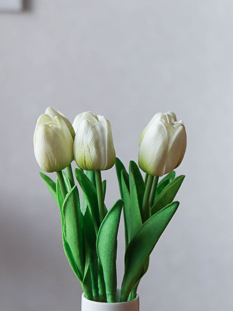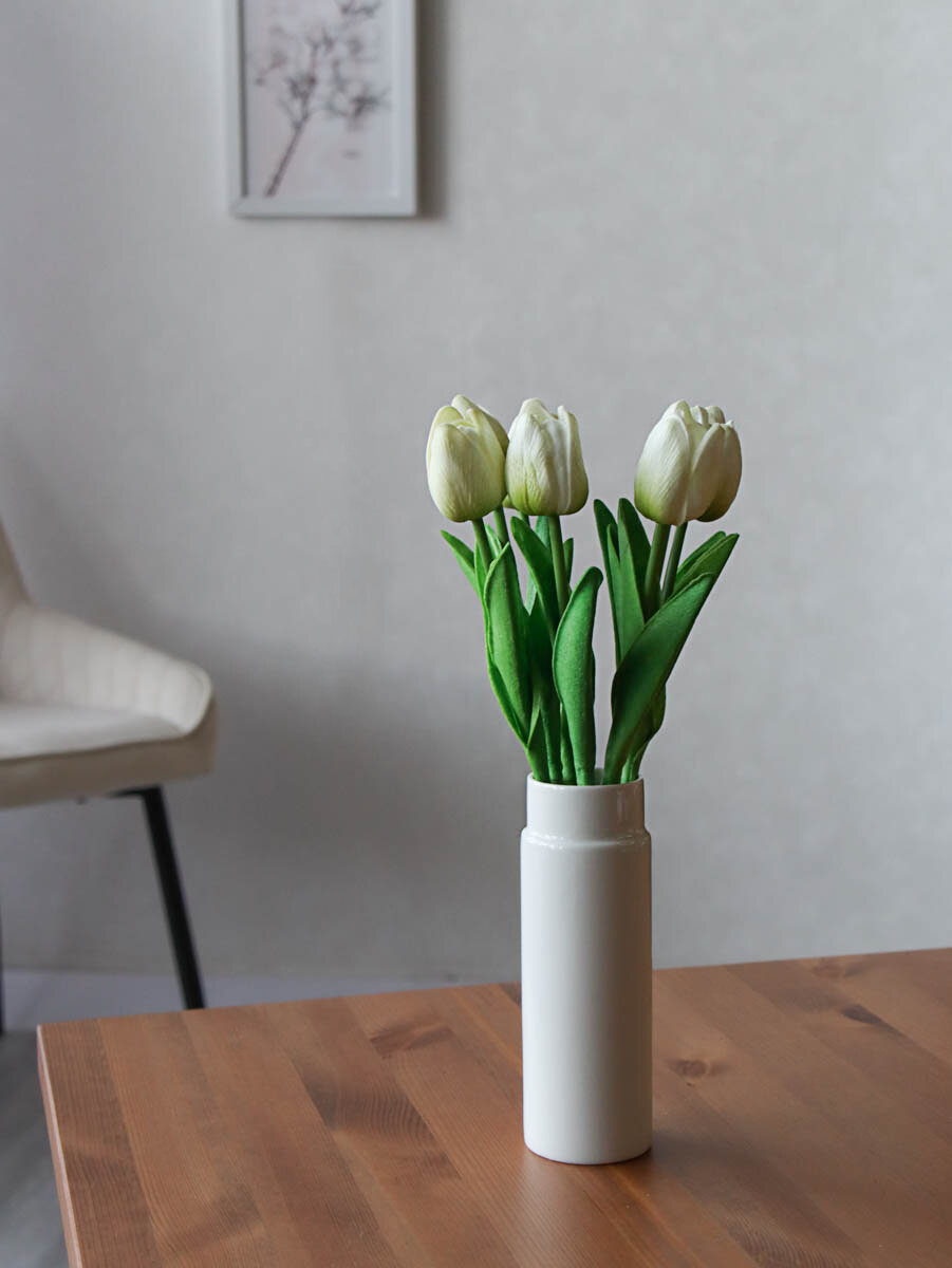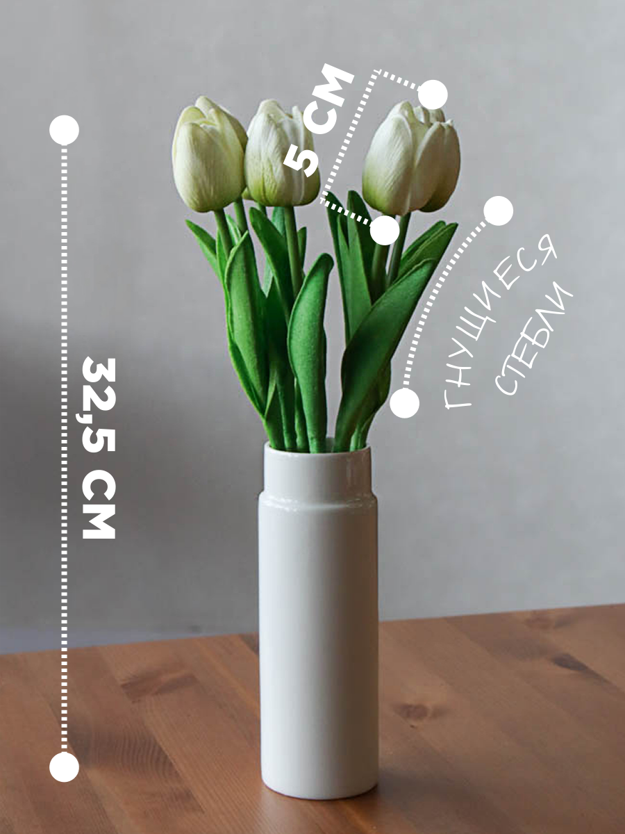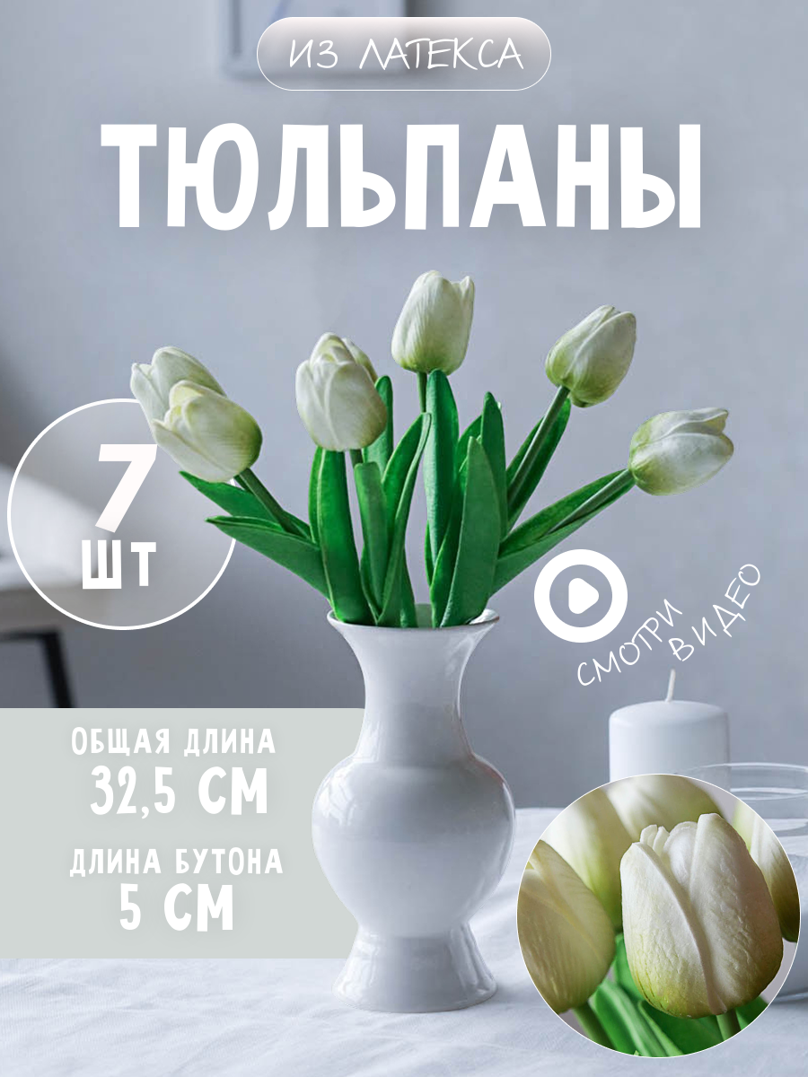 Купить Тюльпаны 7 шт Букет 32,5 см бело-зеленый Цветок искусственный из латекса