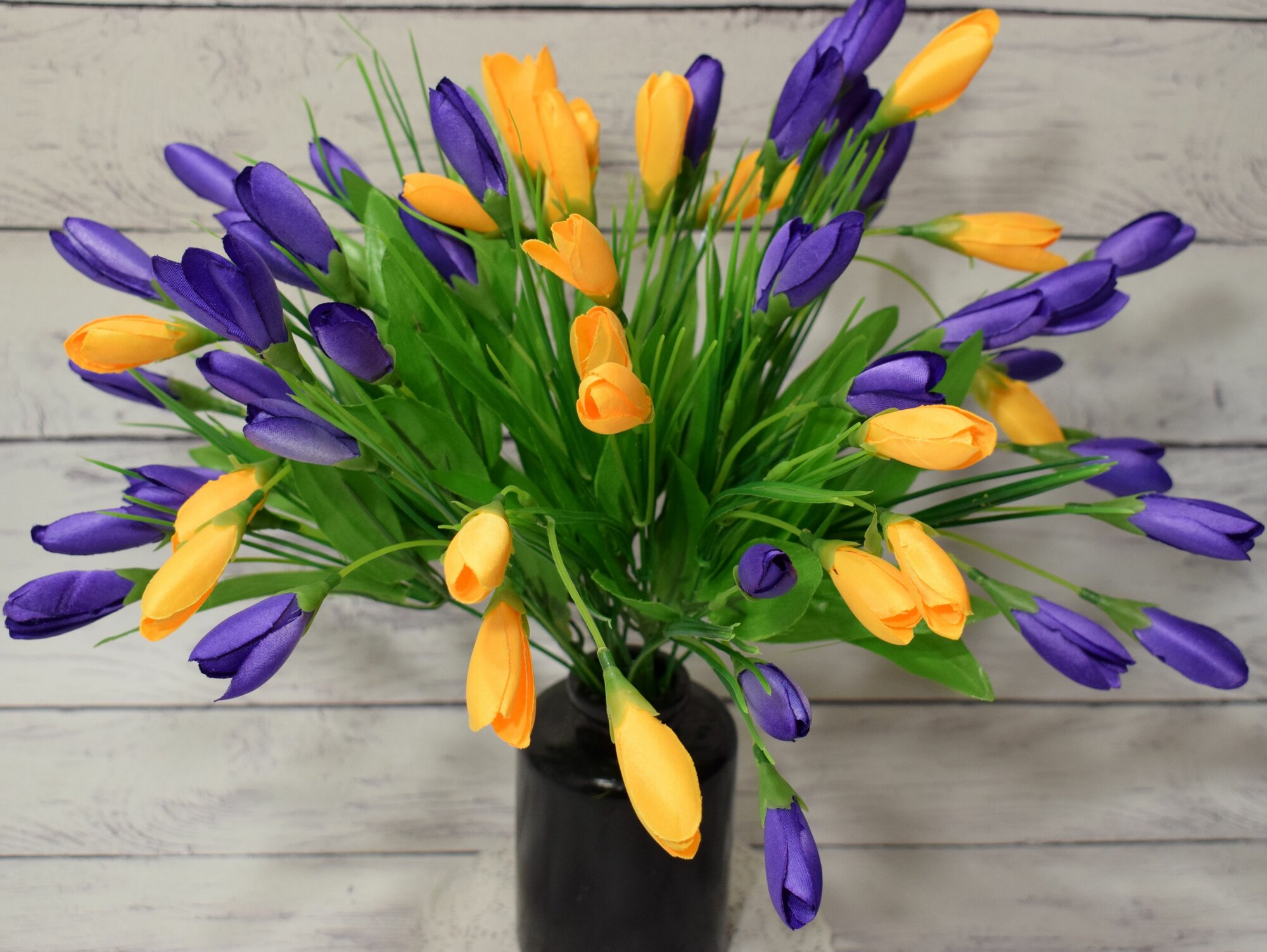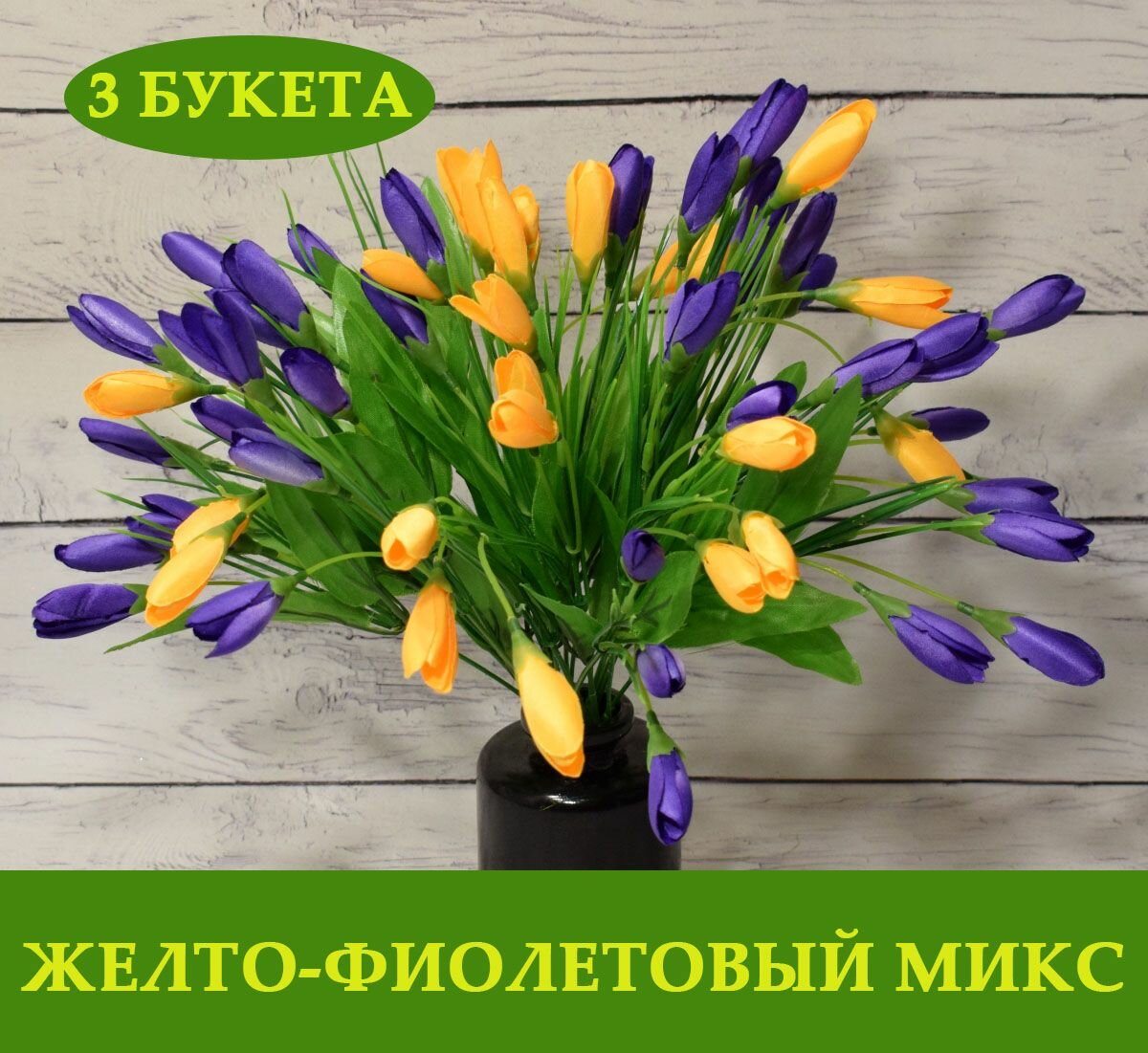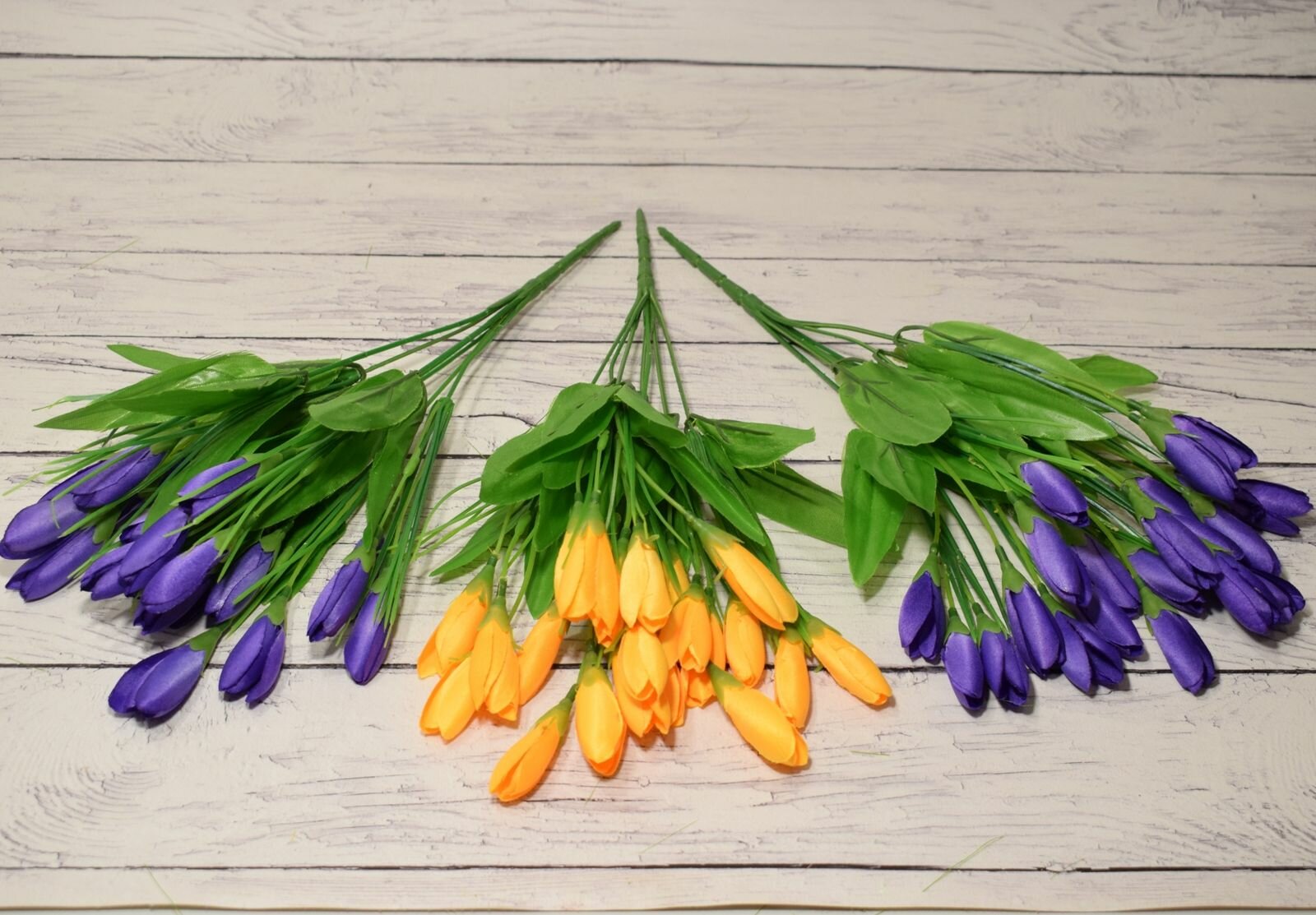 Купить Крокусы-подснежники искусственные, декоративные, цвет желто-фиолетовый, набор 3 букета, новые