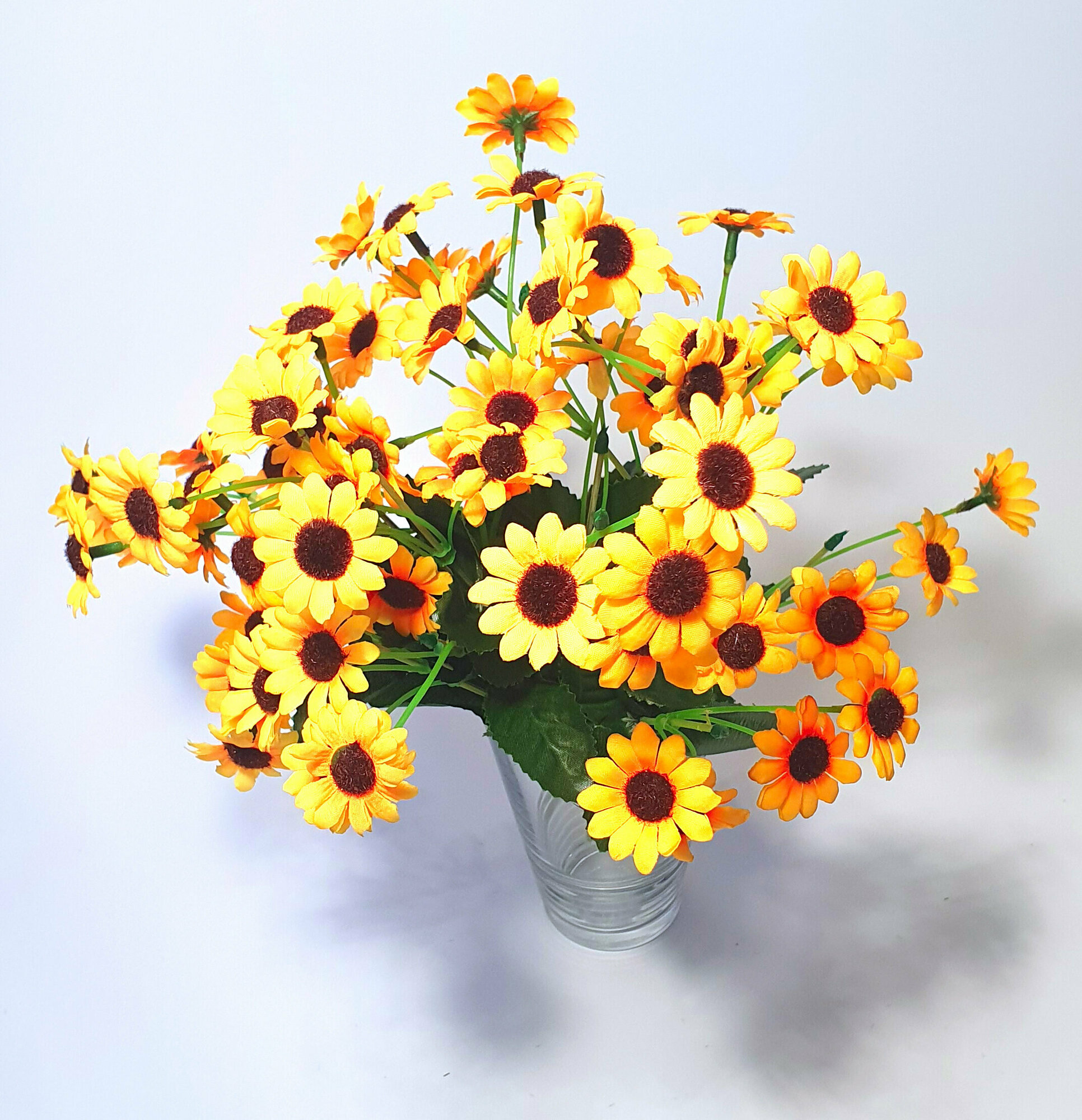 Купить Подсолнухи декоративные мини, искусственные цветы, 33 см, набор 3 ветки по 22 цветка